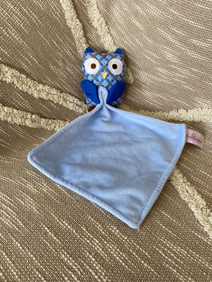 Peluche doudou mouchoir 13cm pommette hiboux chouette bleu à fleur très bon état