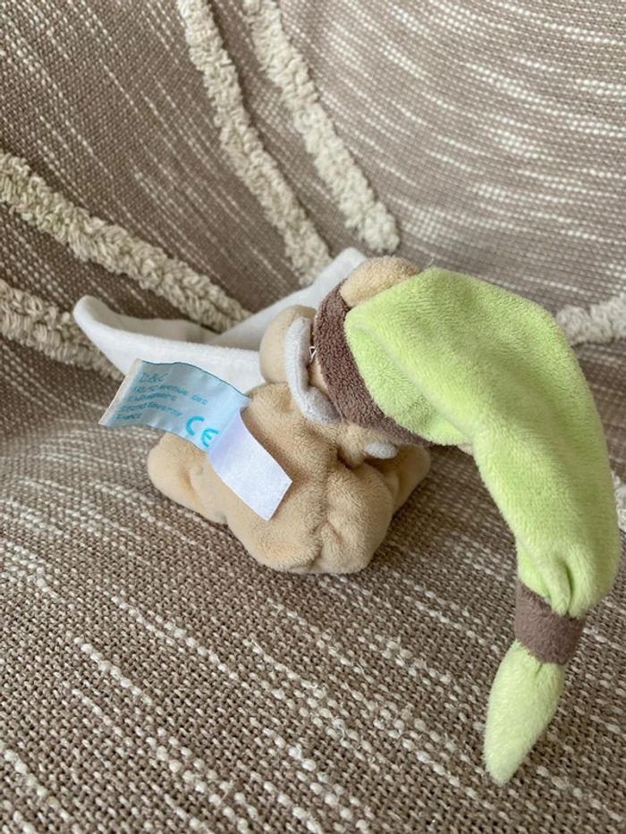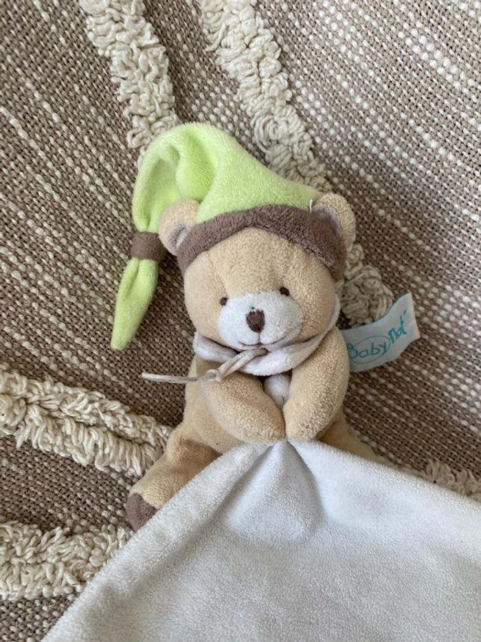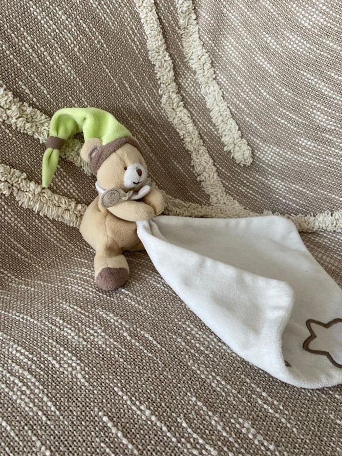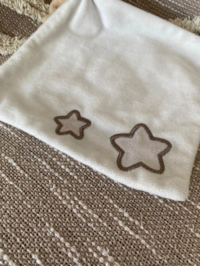 Peluche doudou mouchoir 14cm Babynat ours marron blanc vert étoile bon état - photo numéro 5
