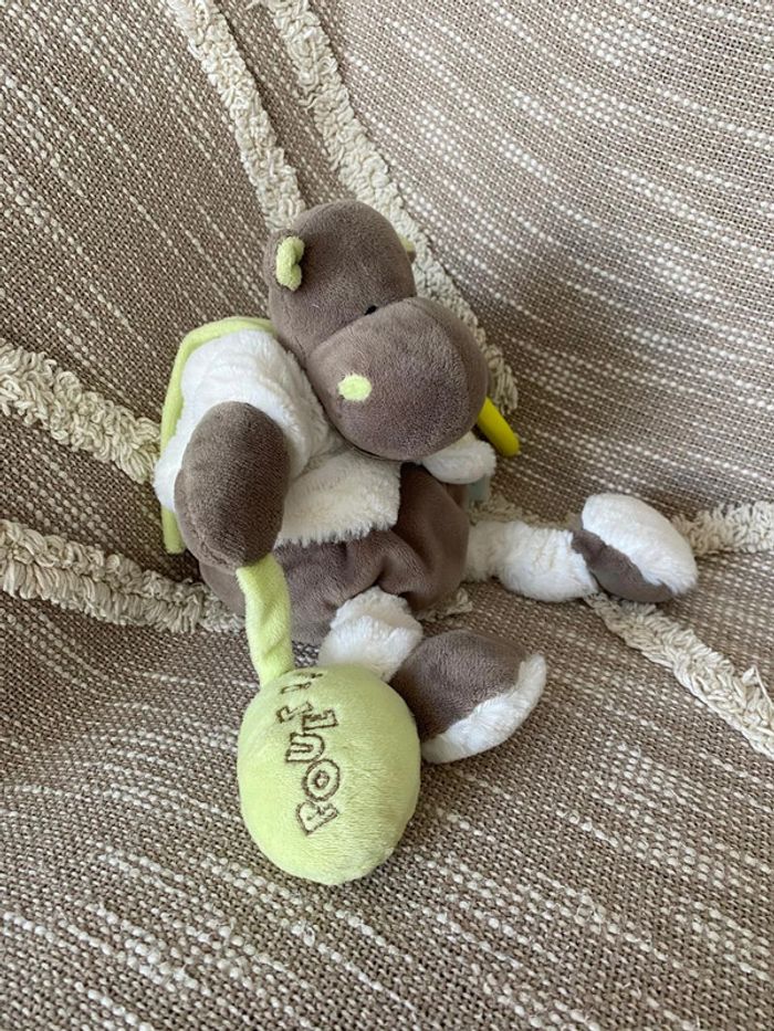 Peluche Doudou 25cm babynat hippopotame vert marron gris blanc parfait état - photo numéro 4
