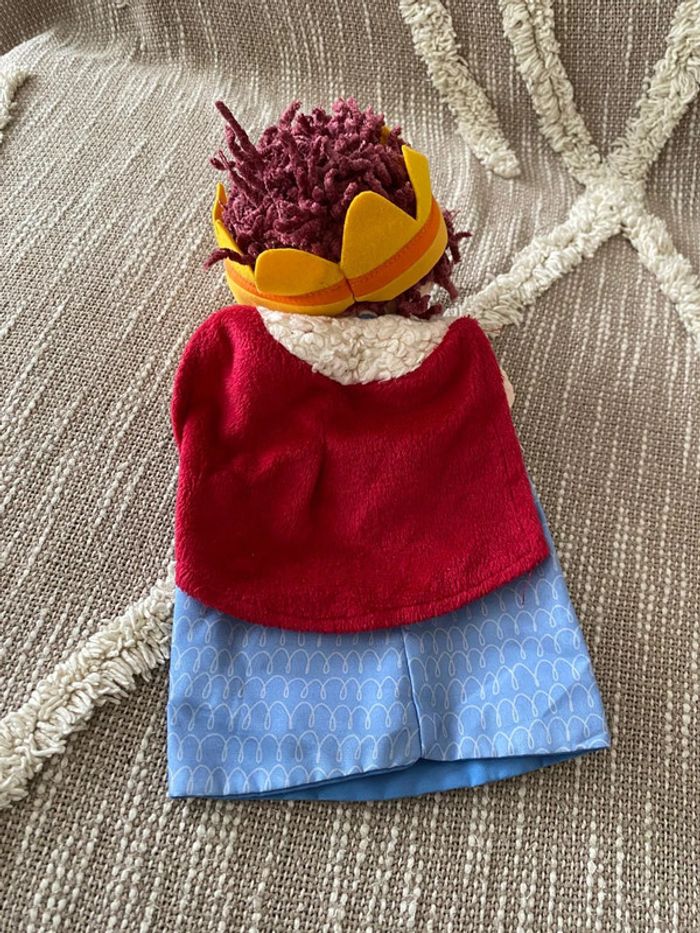 Peluche doudou marionnette 25cm Haba poupée garçon roi prince bleu et rouge très bon état - photo numéro 3