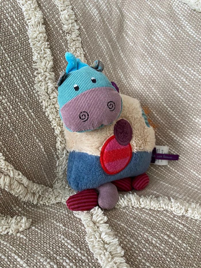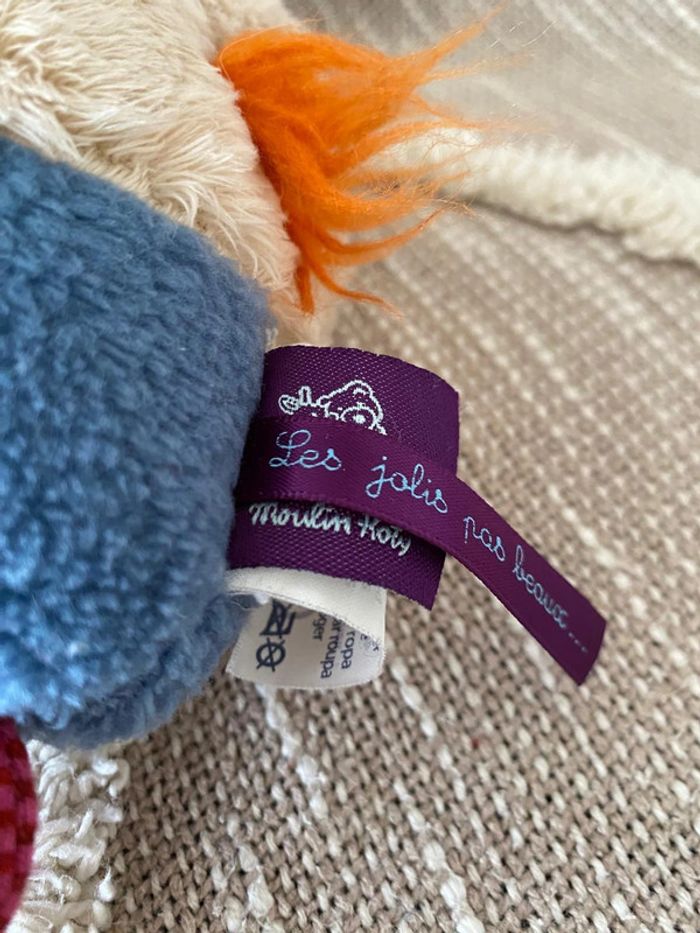 Peluche doudou 17cm moulin roty vache bleu rose rouge très bon état - photo numéro 2