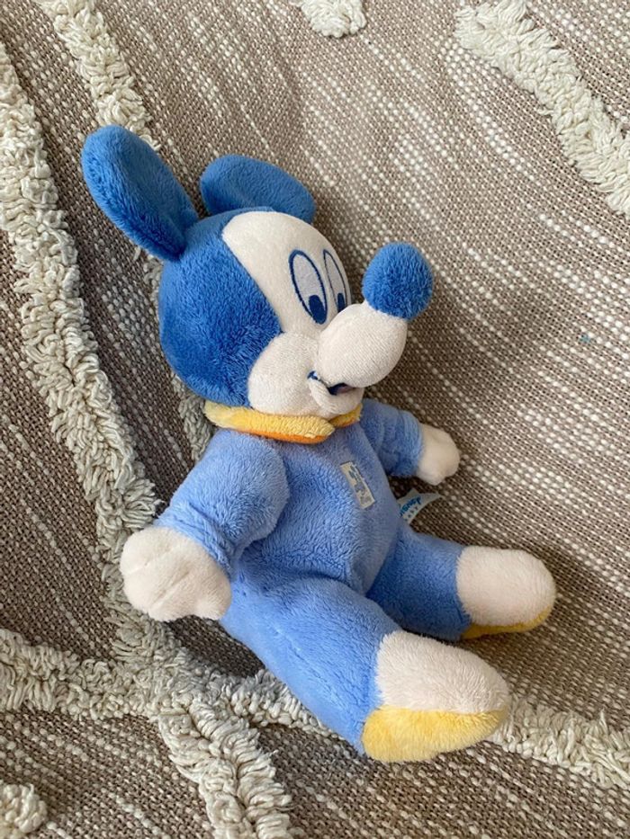 Peluche doudou 25cm disney Mickey souris vintage bleu et blanc très bon état - photo numéro 1