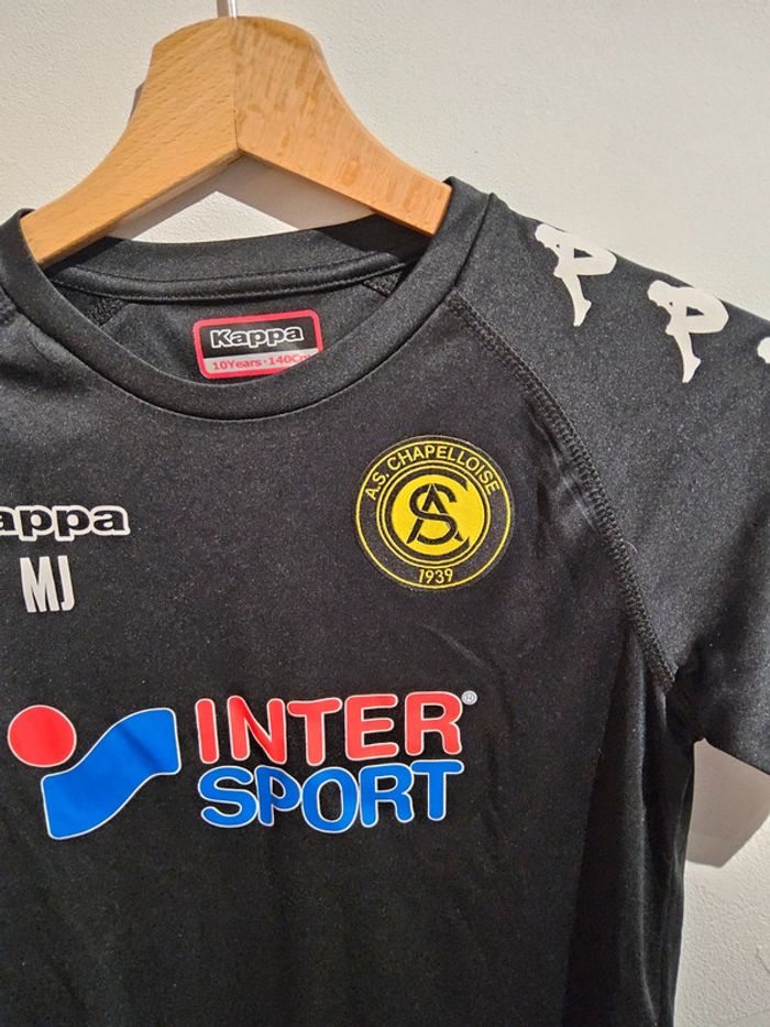 Je vends ce t-shirt de la marque Kappa, de couleur noire. - Type de produit : T-shirt - Marque : Kappa - Taille : 10 ans - Couleur : Noir - Caractéristiques : Logo Kappa et Inter Sport imprimés N'hésitez pas à me contacter pour plus d'informations ou de photos. #_magalie0212garcon