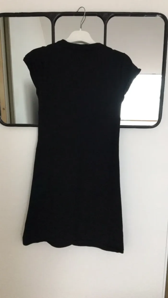 Robe tissus assez épais manches courtes. Idéal pour l’hiver. Évasée sous la poitrine col rond.