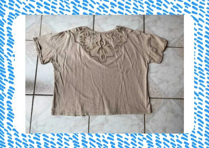 Il est taché. Je ne suis pas sûre de la taille. 61,5 cm aisselles à aisselles. 58 cm longueur. #kookoo13 #tshirtcamaieu