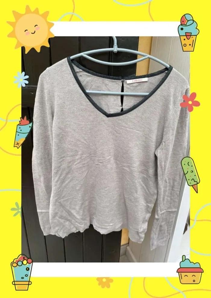 Taille 38-40. Il n'y a plus l'étiquette. Petit trou (qui avait été recousu) et bouloches. Deux noeuds se décousent. Etat satisfaisant. #kookoo13 #camaieu3840 #pulcolv3840