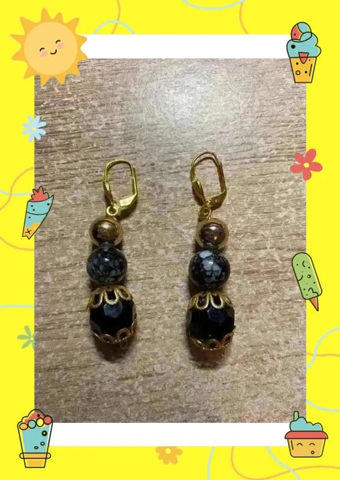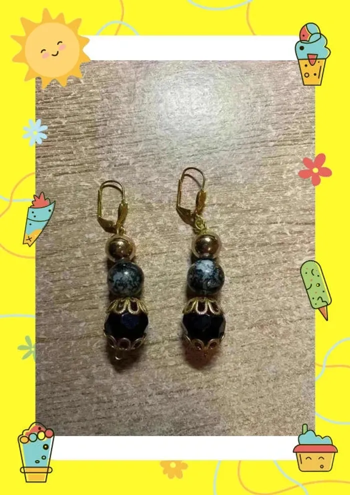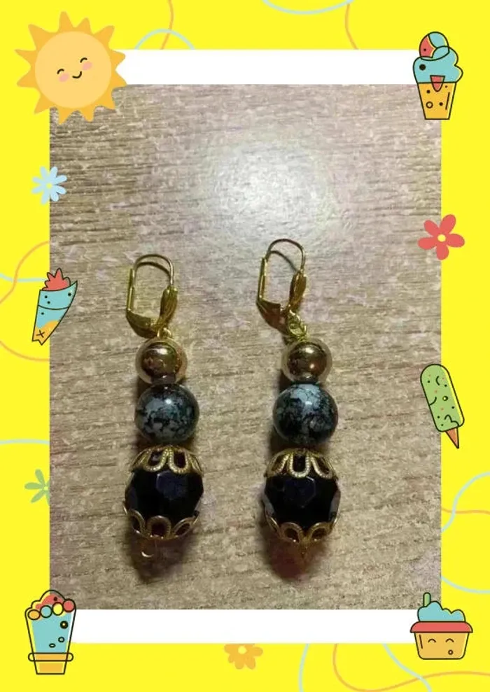 Boucles d'oreilles pendantes noires dorées - photo numéro 1