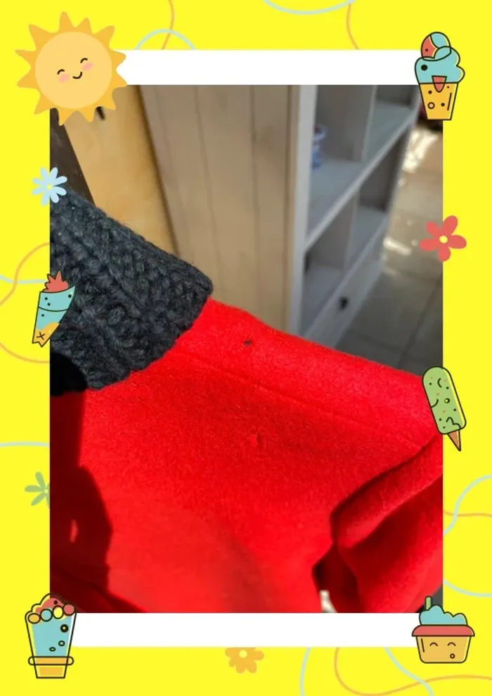 Il y a 2 trous, il manque de couleurs et de matière (il a été attaqué par des mites). Laine et polyamide. #kookoo13 #manteauboss14ans #manteau14ans #boss14ans