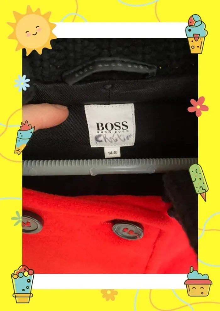 Manteau rouge à boutons noirs 14 ans hugo boss