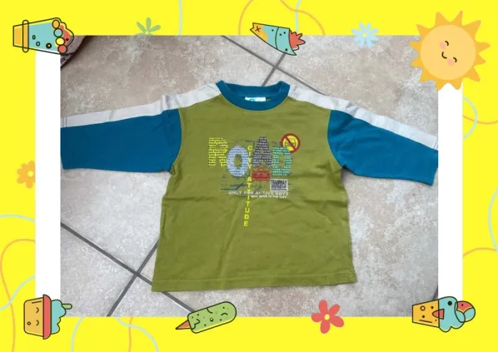 T-shirt à manches longues vert bleu Okids Vertbaudet 2 ans - photo numéro 1