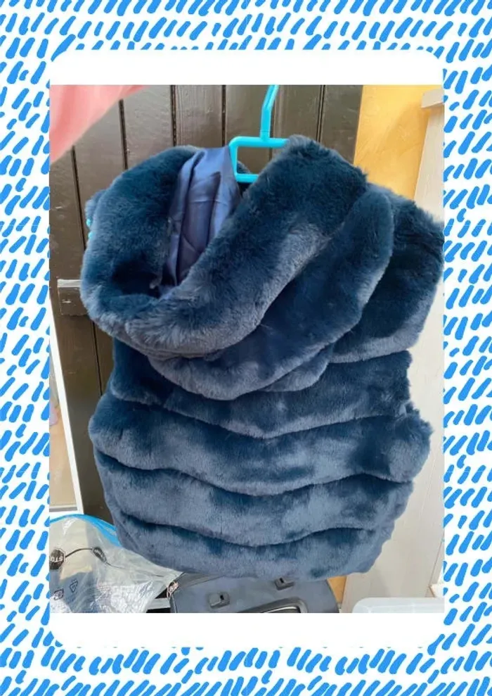Taille unique. Convient pour taille 36, 38, voire 40. #kookoo13 #vestesansmanches #vestefaussefourrure #vestesansmanchesmarine