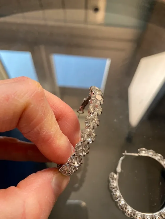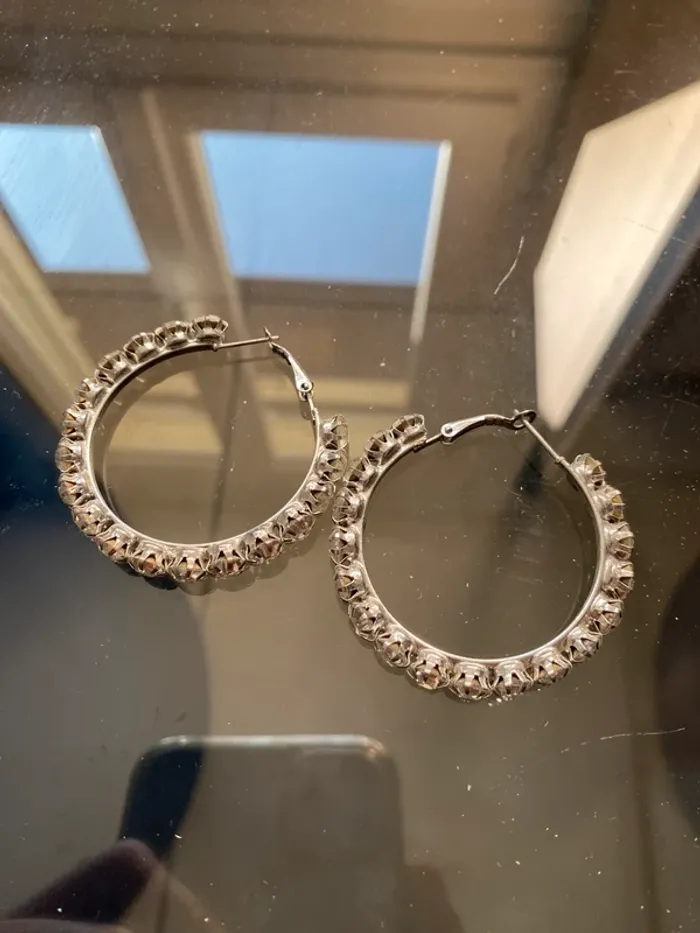 Paire de boucles d'oreilles créoles argenté faux diamants - photo numéro 1