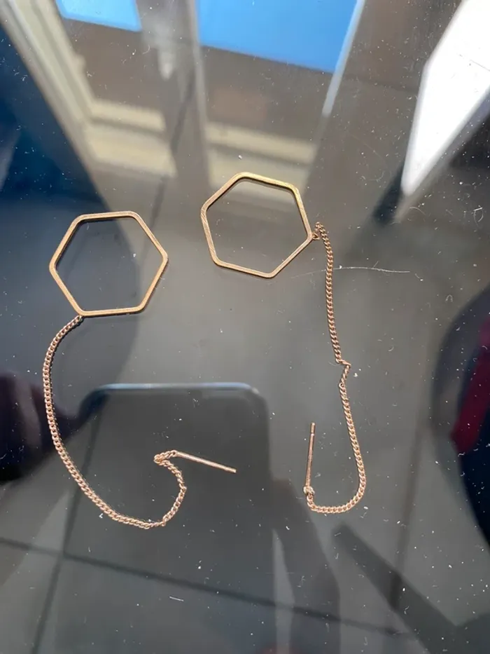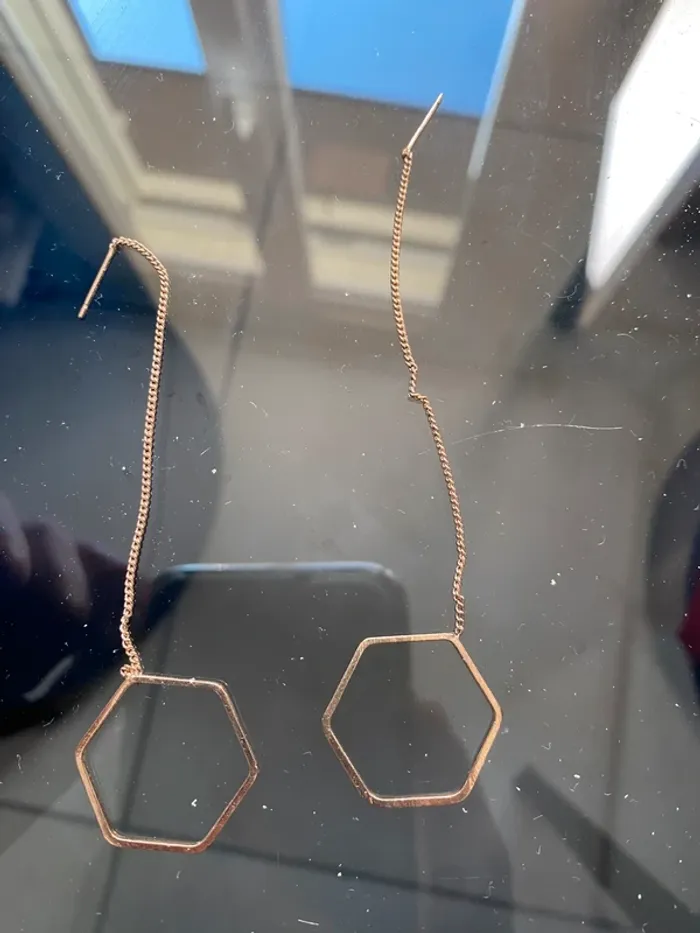 Boucles d'oreilles pendantes doré forme géométrique - photo numéro 1