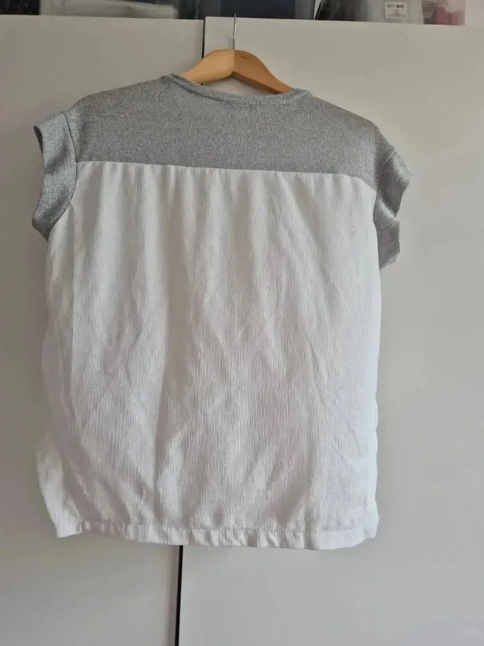Jolie t-shirt d'été ZARA Taille S 36 blanc et motifs argenté - photo numéro 7