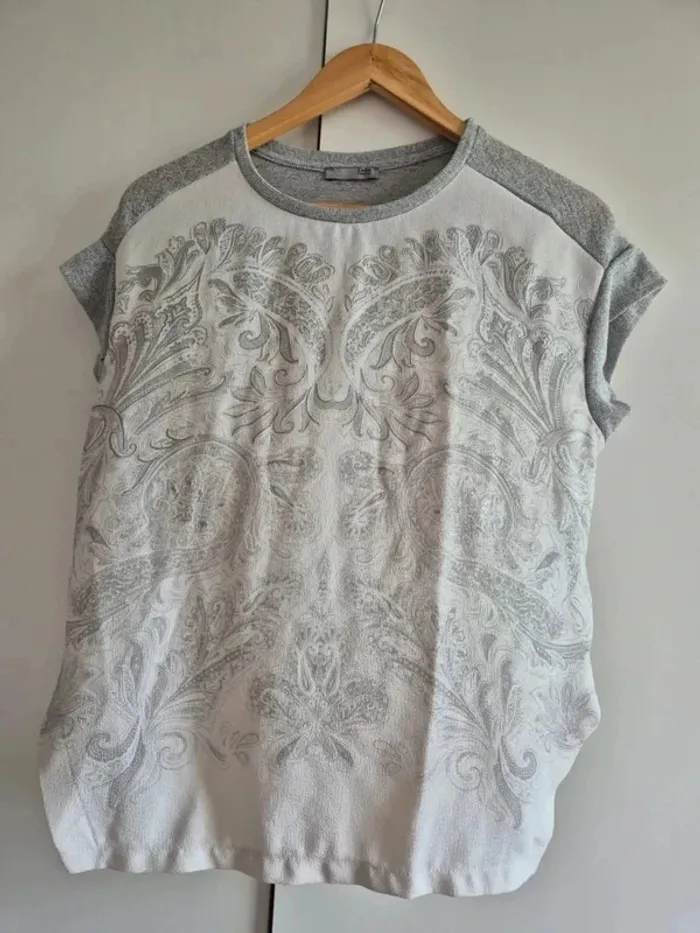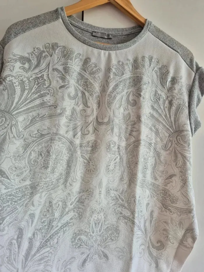 Jolie t-shirt d'été ZARA Taille S 36 blanc et motifs argenté