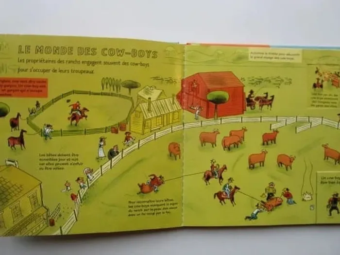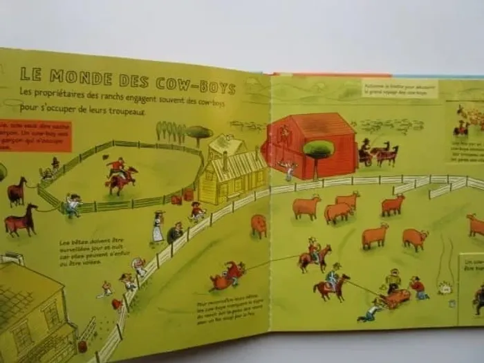 Des rabats à déplier, des tirettes à actionner, et d'autres surprises à découvrir au fil des pages pour tout connaître des relations et modes de vie des cow-boys et des indiens ! Quelle est l'histoire des Indiens ? Où vivent-ils ? Quelle est leur vie quotidienne ? Quand les cow-boys sont-ils arrivés et pourquoi ? Quels sont les grands événements du Far West ? Éditeur ‏ : ‎ Nathan 32 pages Âge de lecture ‏ : ‎ 4 - 6 ans Dimensions ‏ : ‎ 19.8 x 2.4 x 19.9 cm Livre en très bon état Je vends d'autres livres de la même collection #phil_peg_kididoc #kididoc #livredocumentaire #cowboy #indien #livrerabat