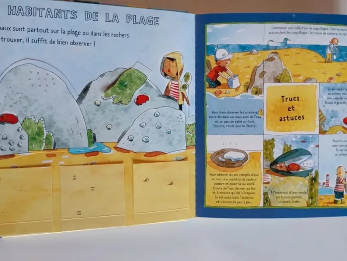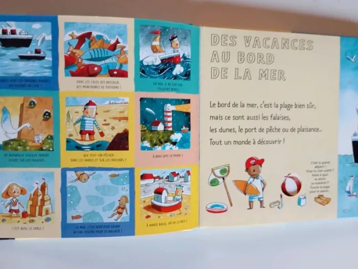 C'est quoi, le sable ? A marée basse, où va la mer ? Que peut-on pêcher dans les mares et sur les rochers ? Éditeur ‏ : ‎ Nathan Jeunesse 32 pages Âge de lecture ‏ : ‎ 3 - 6 ans Dimensions ‏ : ‎ 20 x 1.3 x 20 cm Je vends d'autres kididoc #phil_peg_kididoc ou sur les vacances #phil_peg_vacances #kididoc #mer #vacances #plage