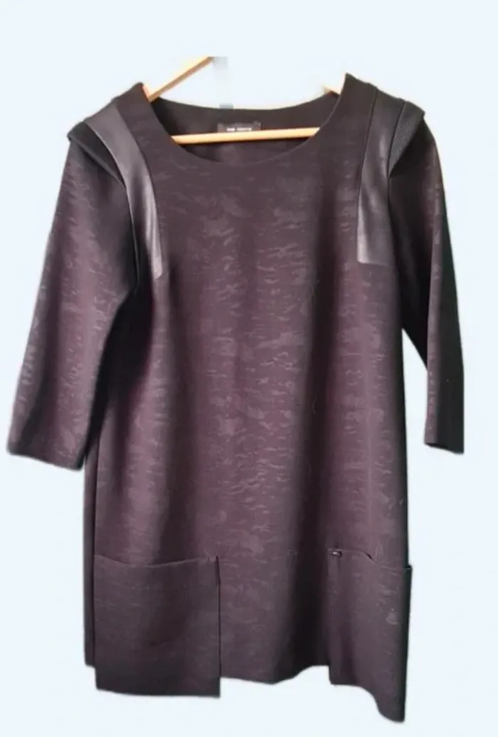 Robe hiver manche trois-quarts avec empiècement en imitation cuir