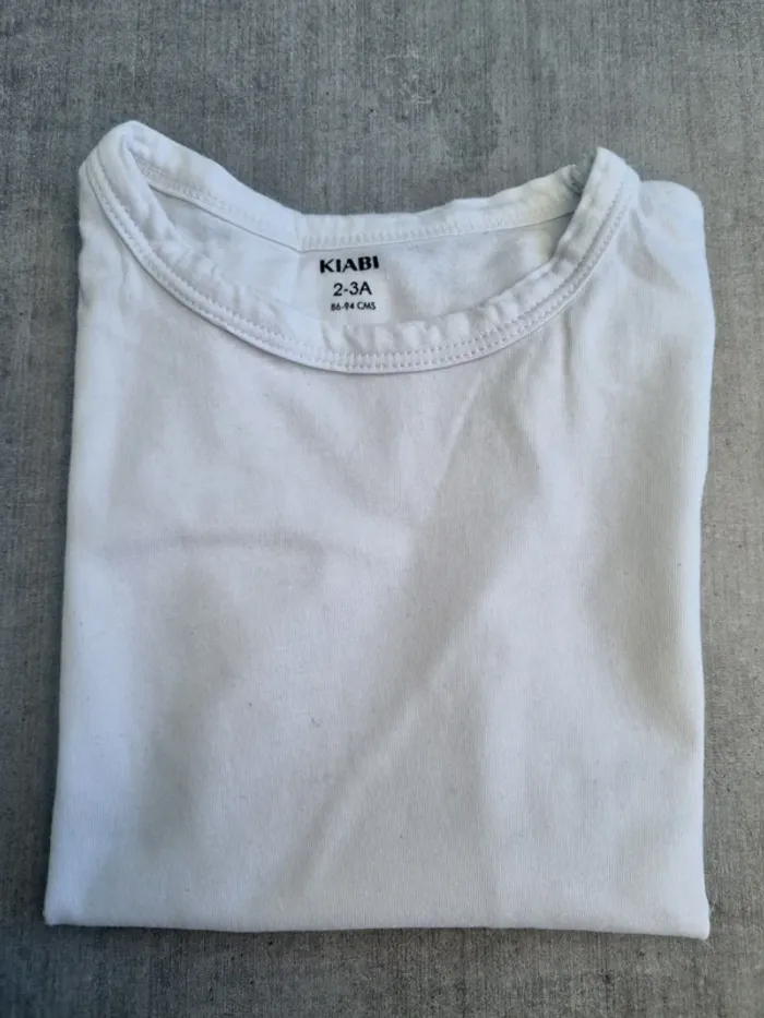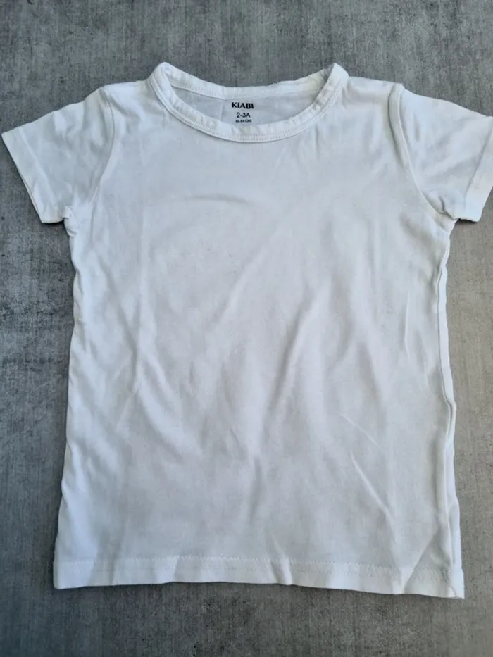 T-shirt de marque "KIABI" Blanc à manches courtes Taille 2-3 ans Très bon état À retirer sur place ou frais de port à votre charge Pour voir d'autres affaires : #fred5129_affaires_manches_courtes Pour voir d'autres affaires : #fred5129_2ans Pour voir d'autres affaires : #fred5129_3ans