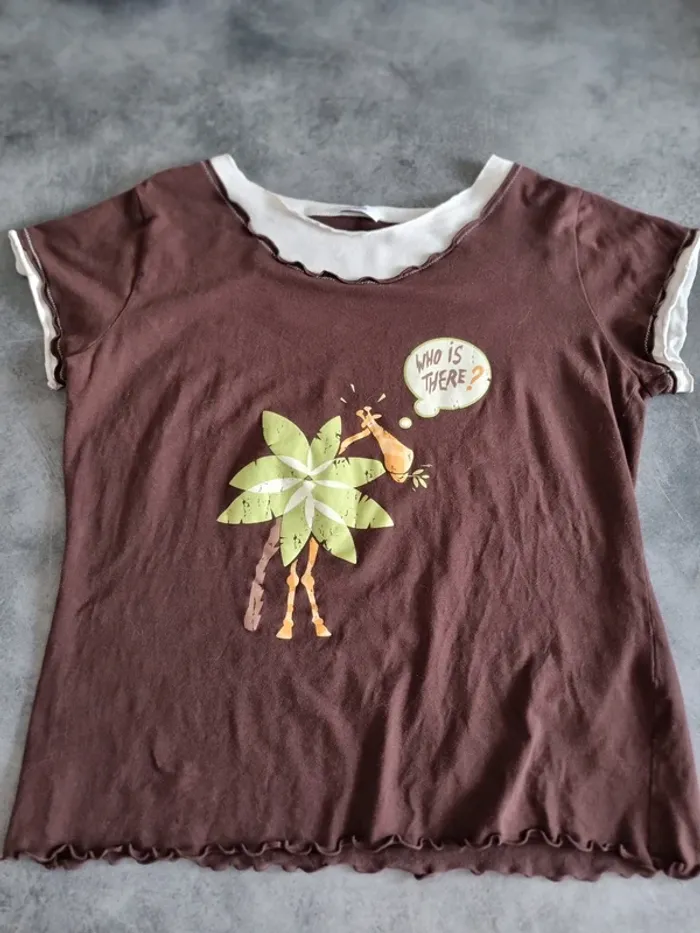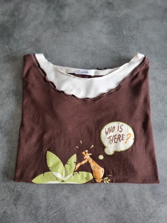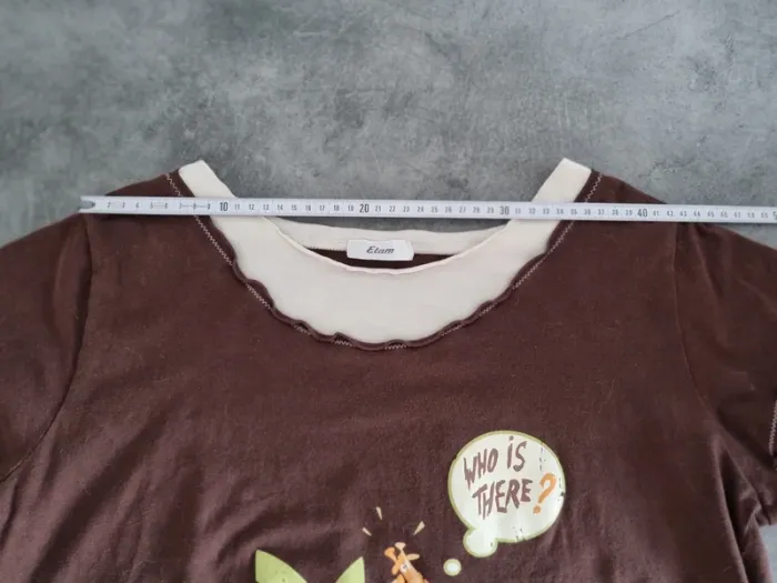 T-shirt de nuit de marque " Etam " Marron avec motifs imprimés Col rond Manches courtes 95% coton 5% élasthanne Taille L Très bon état À retirer sur place ou frais de port à votre charge Pour voir d'autres affaires : #fred5129_tenues_nuits Pour voir d'autres affaires : #fred5129_taille_l Pour voir d'autres affaires : #fred5129_affaires_manches_courtes