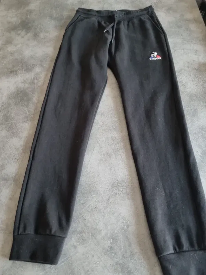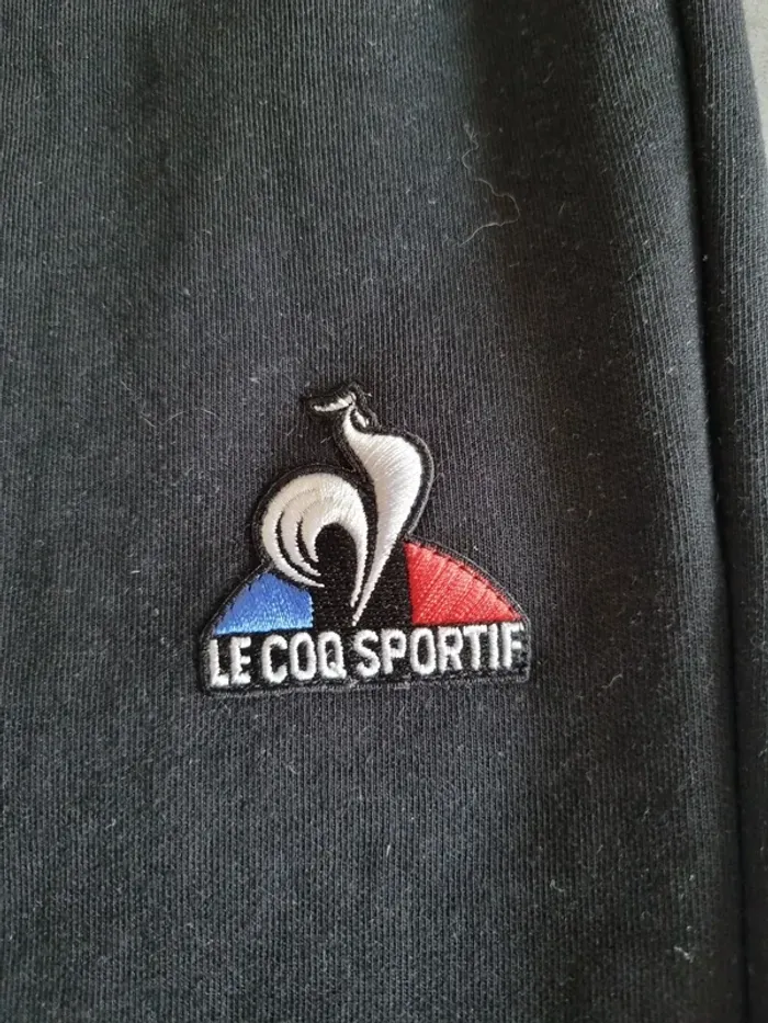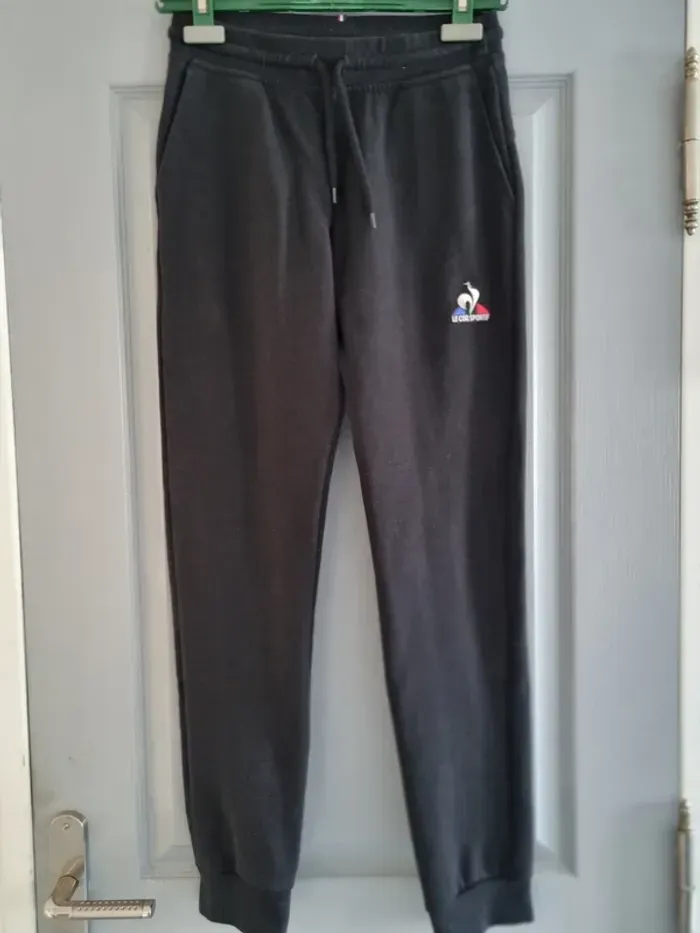 Pantalon de jogging de marque " Le Coq Sportif " Uni noir 2 poches sur le devant Logo Le Coq Sportif brodé sur la jambe Cordon de serrage 85% coton 15% polyester Taille XS Très bon état À retirer sur place ou frais de port à votre Pour voir d'autres affaires : #fred5129_joggings Pour voir d'autres affaires : #fred5129_affaires_sports Pour voir d'autres affaires : #fred5129_taille_xs