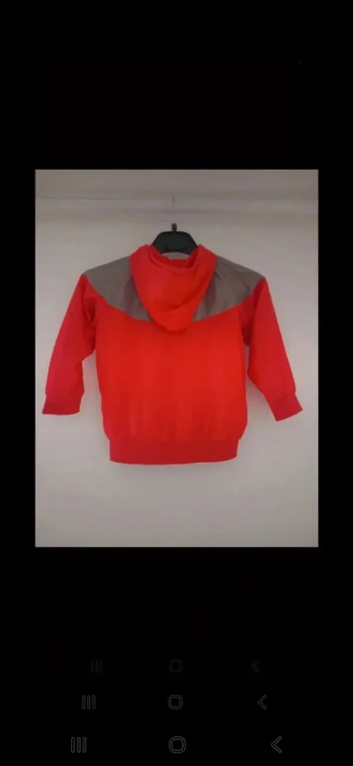 jolie veste Nike rouge avec empiècement gris et capuche.