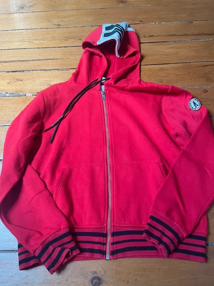 Veste à capuche Rouge et moir Logo au dos MArque Jennyfer Taille M Maison non fumeur