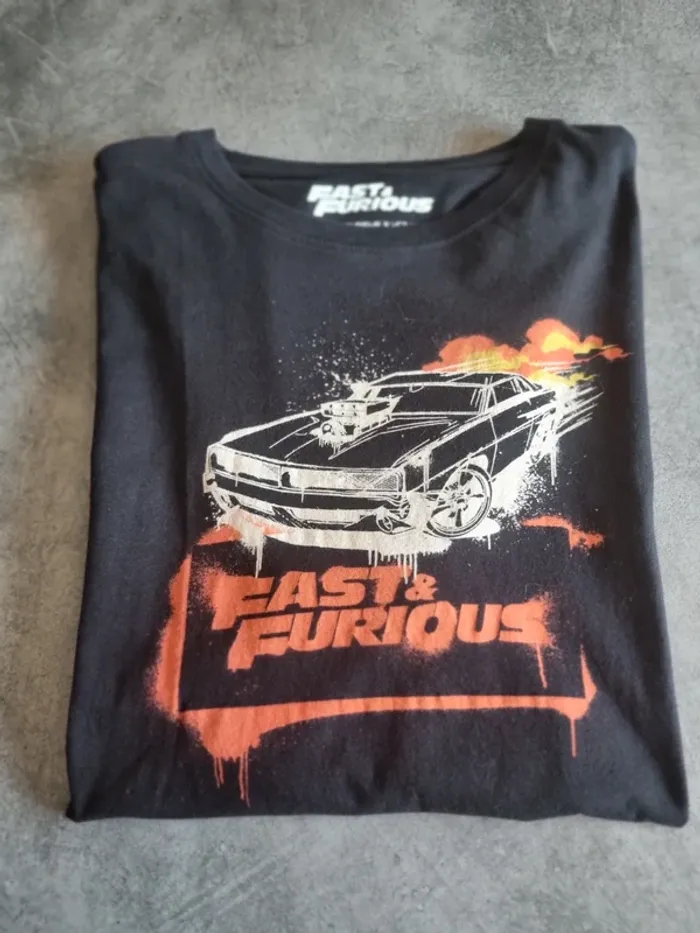 T-shirt de marque " Fast & Furious " Noir avec flocage sur le devant Manches courtes Col rond 100% coton Taille L Très bon état A retirer sur place ou frais de port à votre charge Pour voir d'autres affaires : #fred5129_affaires_manches_courtes Pour voir d'autres affaires : #fred5129_taille_l