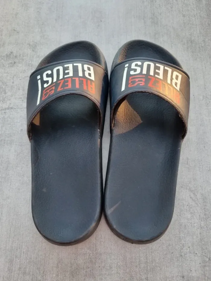 Sandale / claquette bleue blanc rouge Idéale pour la piscine sèche rapidement Pointure 36 Très bon état A retirer sur place ou frais de port à votre charge pour voir d'autres affaires: #fred5129_chaussures_bottes