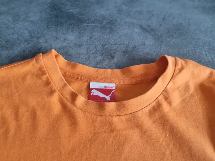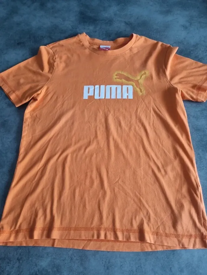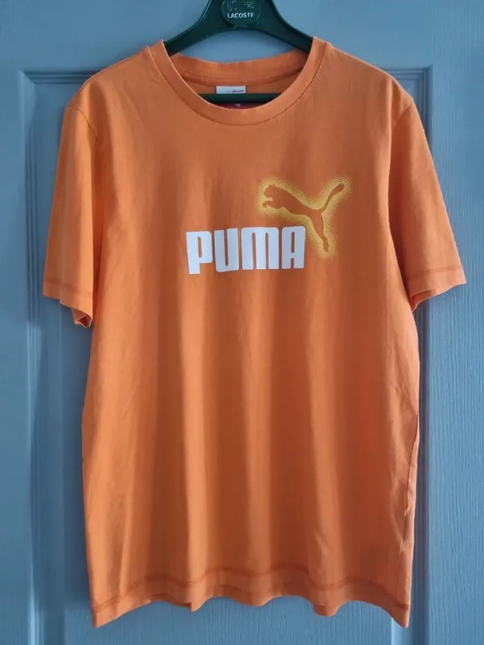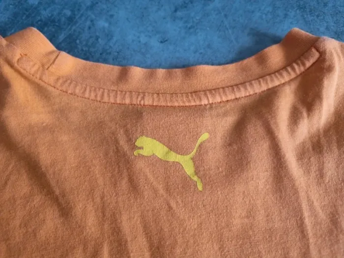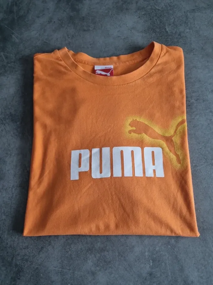 T-shirt de marque "Puma" Manches courtes Orange avec flocage sur le devant Petit logo à l'arrière au niveau de la nuque 100% coton Taille S Très bon état À retirer sur place ou frais de port à votre charge Pour voir d'autres affaires : #fred5129_affaires_manches_courtes Pour voir d'autres affaires : #fred5129_taille_s