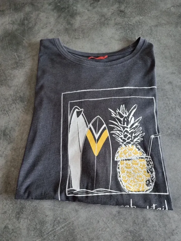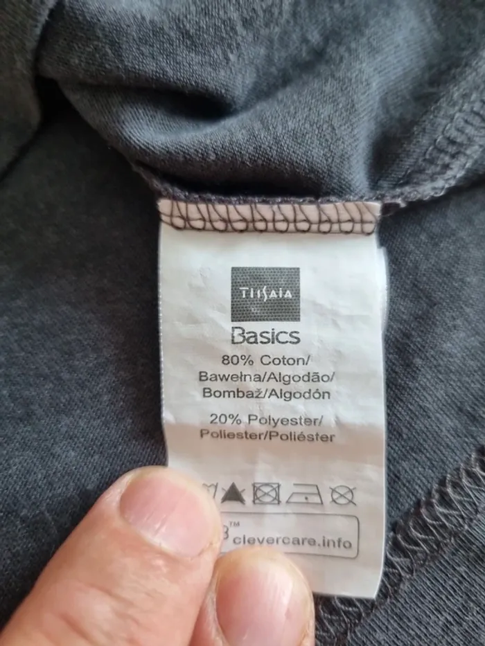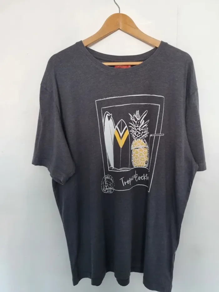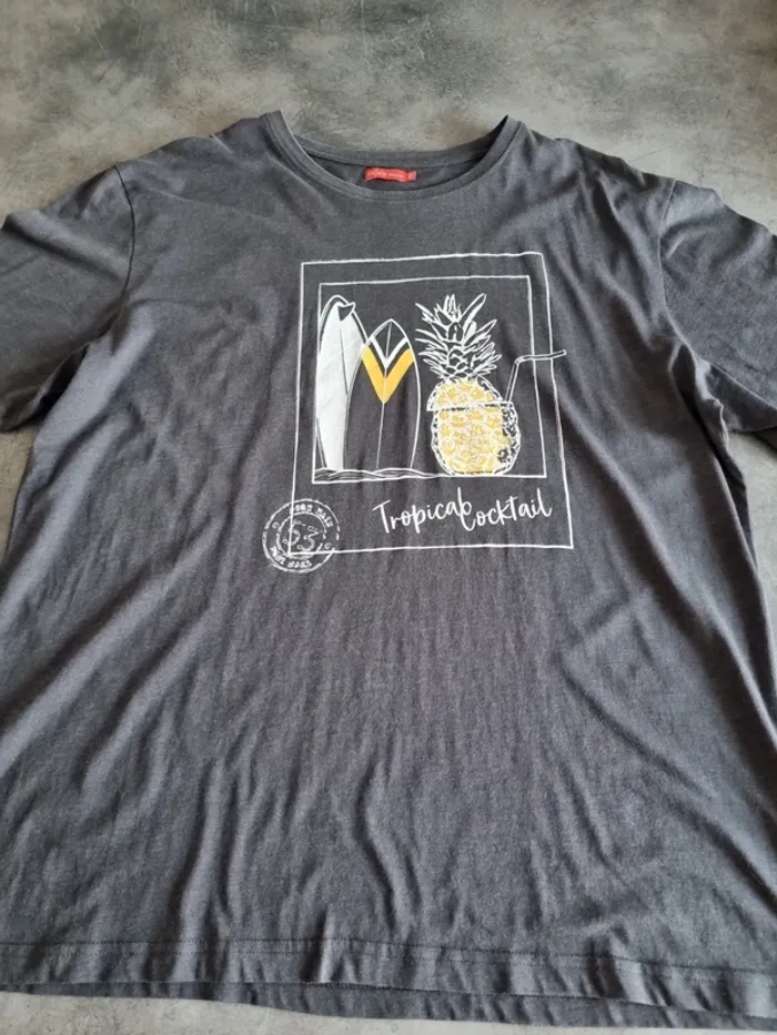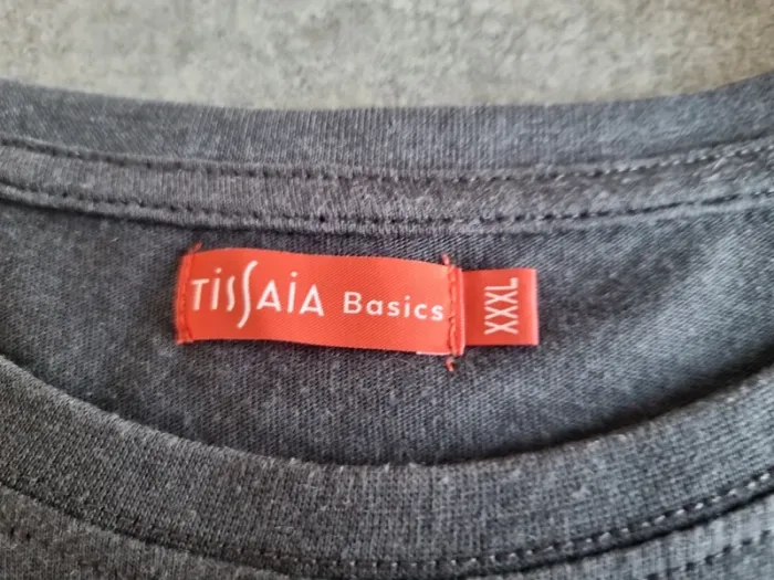 T-shirt de marque "Tissaia" Manches courtes Gris avec flocage sur le devant Col rond 80% coton 20% polyester Taille 3XL Très bon état A retirer sur place ou frais de port à votre charge Pour voir d'autres affaires : #fred5129_affaires_manches_courtes Pour voir d'autres affaires : #fred5129_taille_3xl