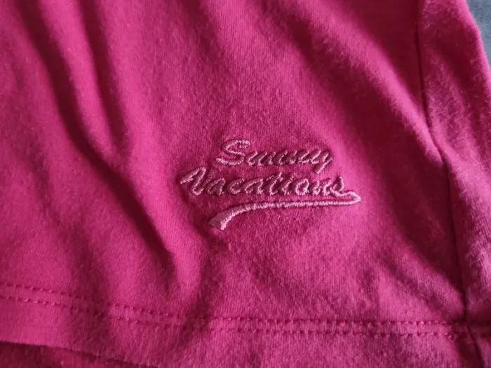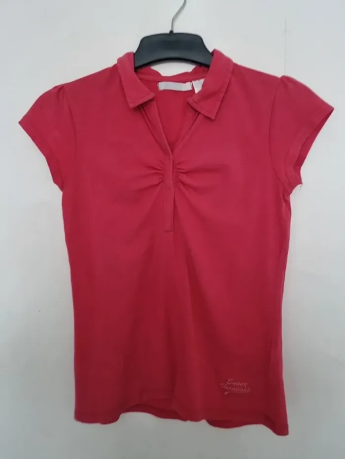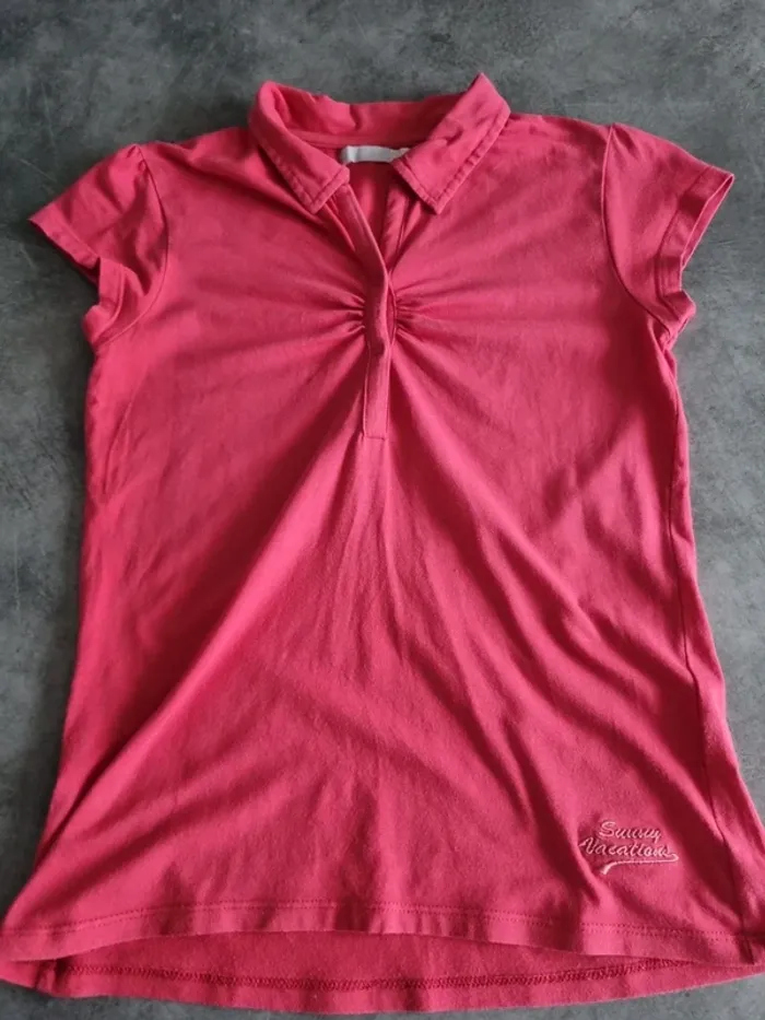 Polo de marque "sunny vacations" Manches courtes Fuchsia uni Col ouvert Petits boutons à pression Marque brodée sur le bas du polo 95% coton 5% élasthanne Taille 14 ans / 162 cm Très bon état A retirer sur place ou frais de port à votre charge Pour voir d'autres affaires: #fred5129_chemises_chemisettes_polos Pour voir d'autres affaires : #fred5129_robes_jupes_débardeurs Pour voir d'autres affaires : #fred5129_affaires_manches_courtes Pour voir d'autres affaires : #fred5129_14ans