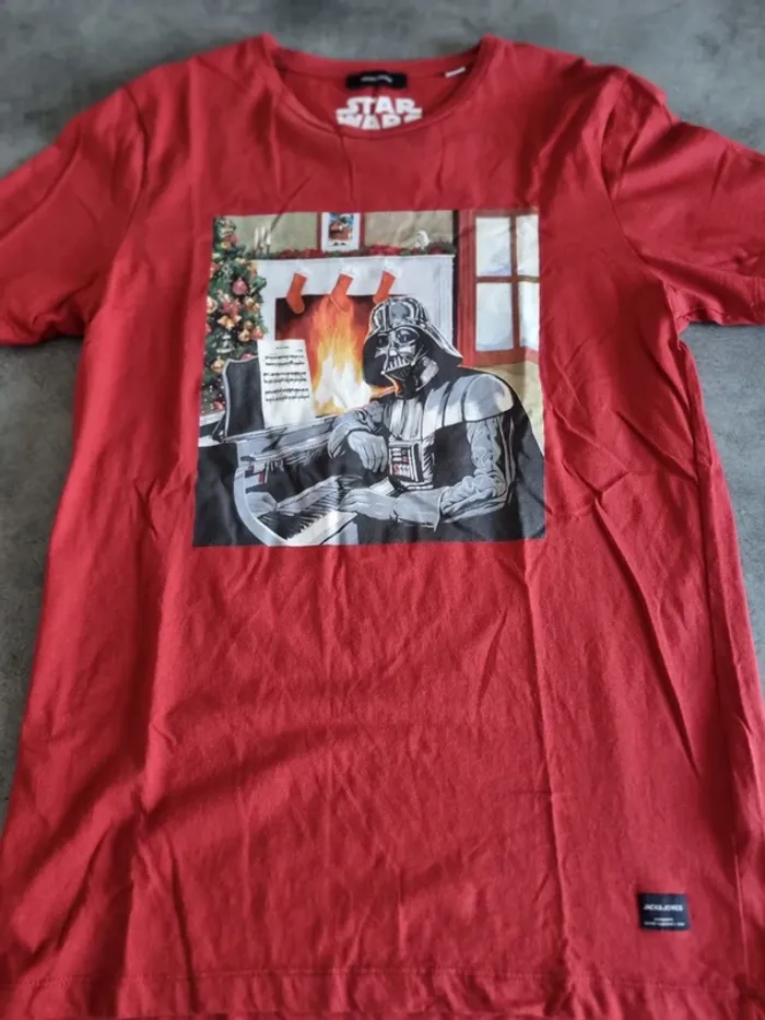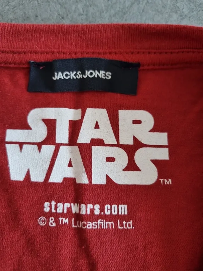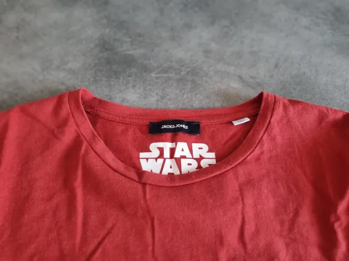 T-shirt de marque " Jack & Jones " Star Wars Rouge avec flocage de Dark Vador Manches courtes Col rond 100% coton Taille L Très bon état À retirer sur place ou frais de port à votre charge Pour voir d'autres affaires : #fred5129_affaires_manches_courtes Pour voir d'autres affaires : #fred5129_taille_l