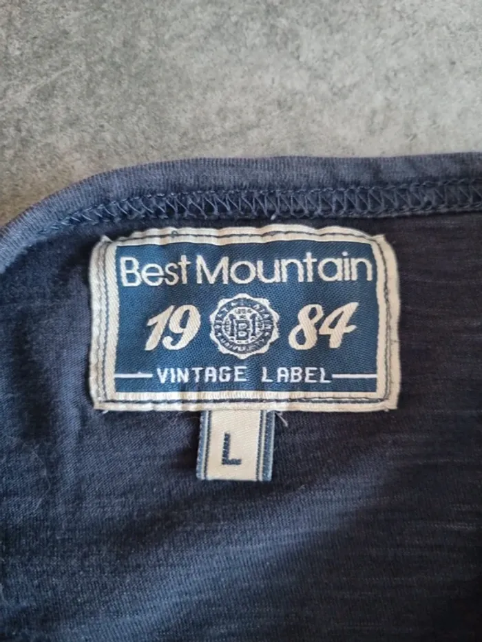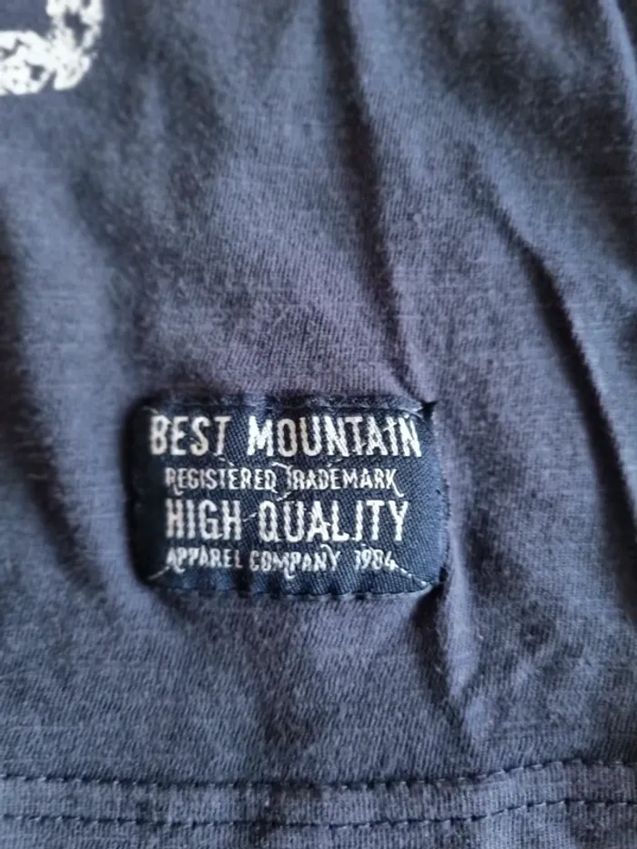 T-shirt de marque " Best Mountain " Bleu avec flocage sur le devant Manches courtes Col rond Taille L Très bon état A retirer sur place ou frais de port à votre charge Pour voir d'autres affaires : #fred5129_affaires_manches_courtes Pour voir d'autres affaires : #fred5129_8ans