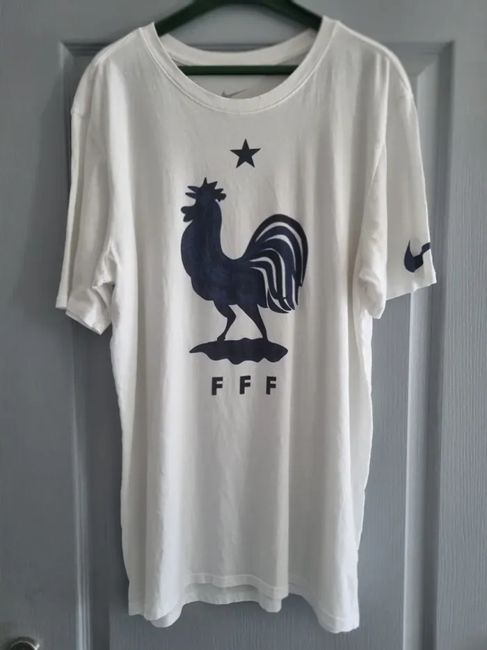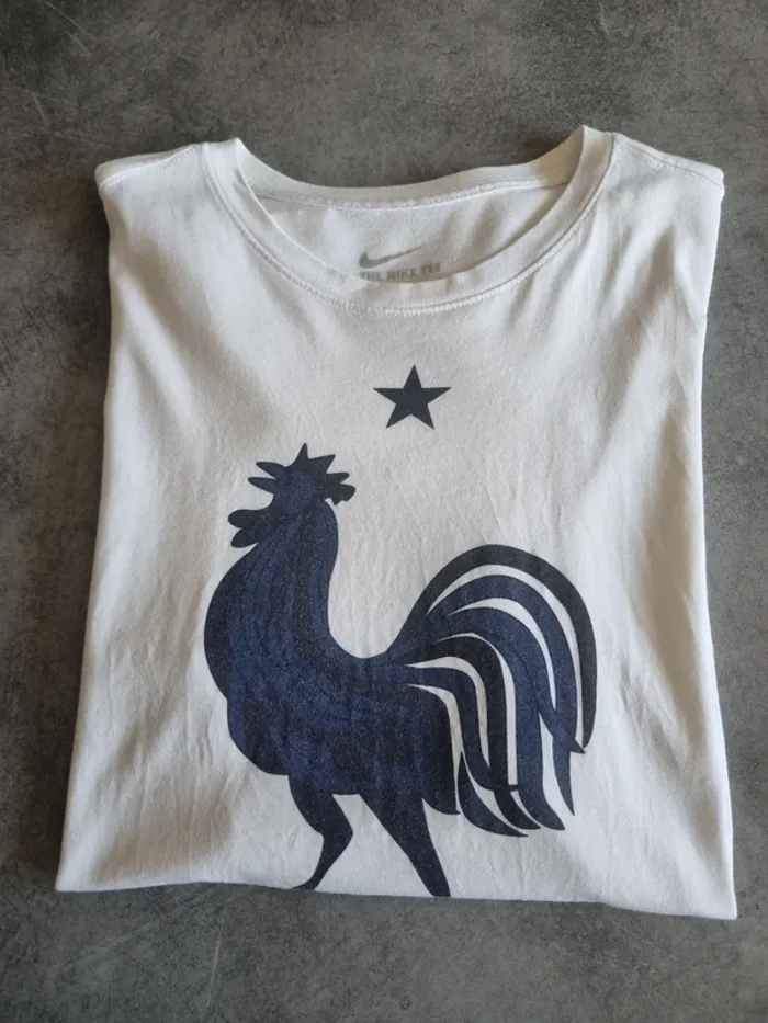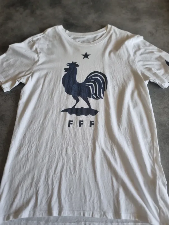 T-shirt de marque " Nike " Équipe de France Blanc avec flocage sur le devant Une étoile ⭐ Col rond Manches courtes 100% coton Taille M Très bon état À retirer sur place ou frais de port à votre charge Pour voir d'autres affaires : #fred5129_affaires_manches_courtes Pour voir d'autres affaires : #fred5129_taille_m Pour voir d'autres affaires : #fred5129_affaires_sports