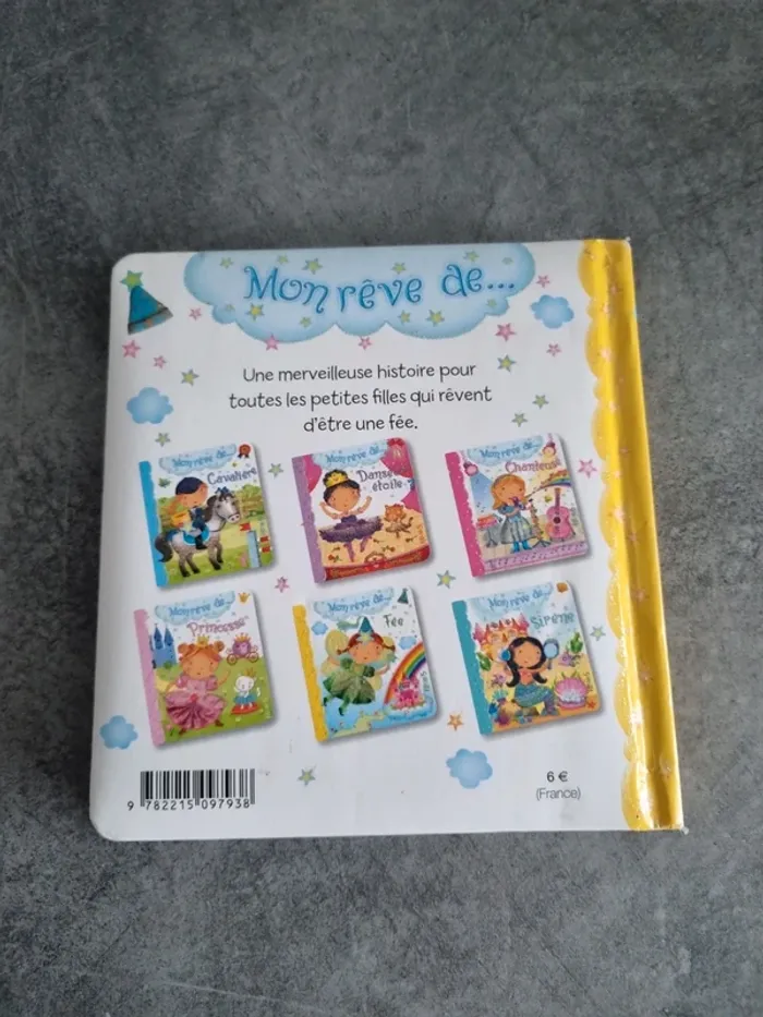Livre mon rêve de fée Éditeur ‏ : ‎ FLEURUS (20 août 2009) 16 pages Âge de lecture ‏ : ‎ 3 - 5 ans Dimensions ‏ : ‎ 15.9 x 2.1 x 17.1 cm Chiara aime écouter les histoires de sa maman. Mais celles qu'elle préfère, ce sont les histoires de fées. Avant même la fin de l'histoire, Chiara s'endort et rêve qu'elle devient une fée. Très bon état À retirer sur place ou frais de port à votre charge Pour voir d'autres affaires : #fred5129_livres