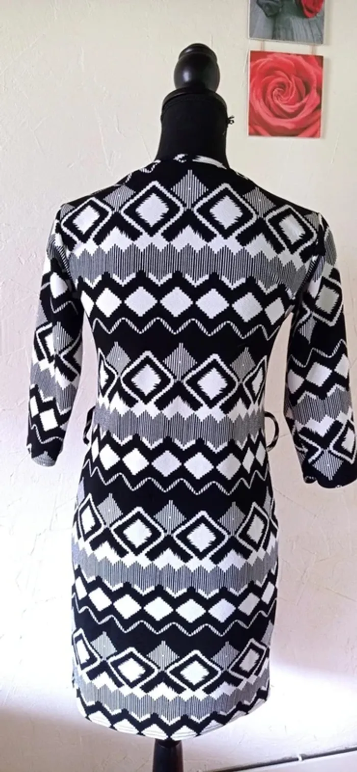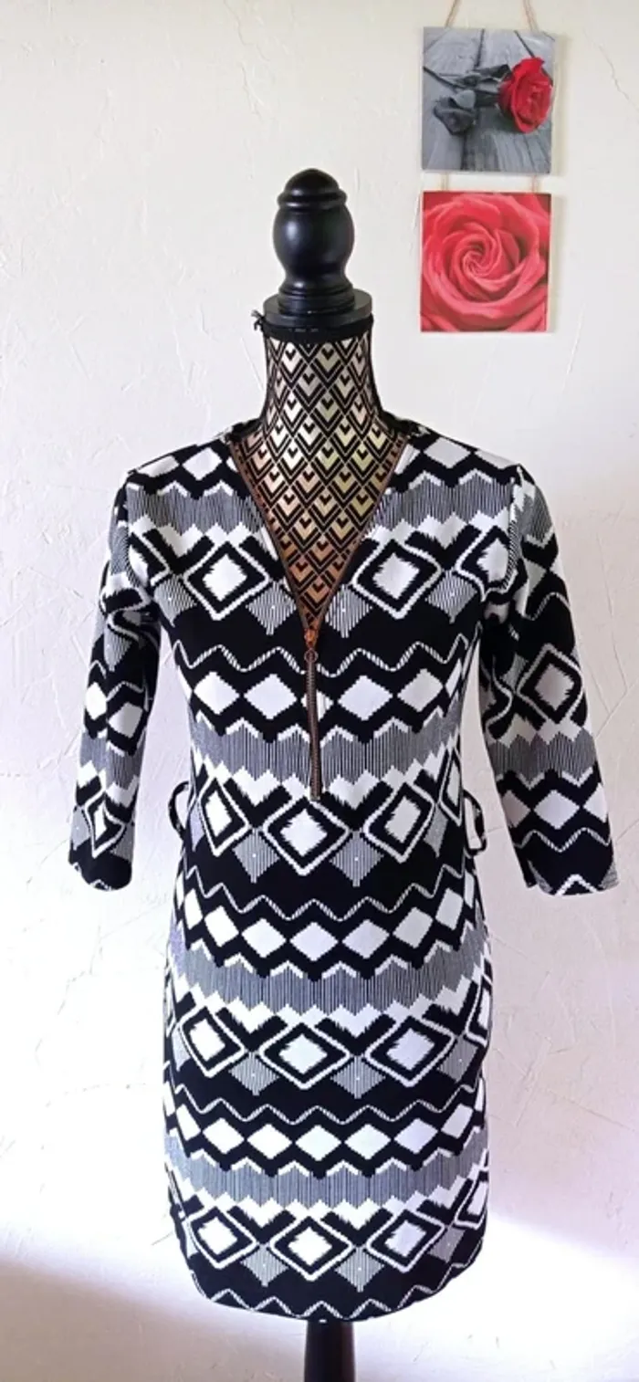 Jolie robe noire et blanche. Fermeture éclair au niveau du décolleté. Passants pour une ceinture. Tissu un peu épais, un peu extensible. Manches 3/4. Etiquette de taille manquante mais correspond à un 36 voire un petit 38. Largeur à plat d'une aisselle à l'autre : 42cm, largeur à plat à la taille : 39.cm, longueur depuis le dessus de l'épaule : 86cm environ, longueur des manches depuis la couture sur le dessus de l'épaule : 38,5cm. Très bon état. #frip_femme36 #frip_femme38. ⚠️lots : contactez-moi pour que je vous fasse une annonce spécifique si vous souhaitez faire un lot, une remise sera effectuée sur le total 😊😊
