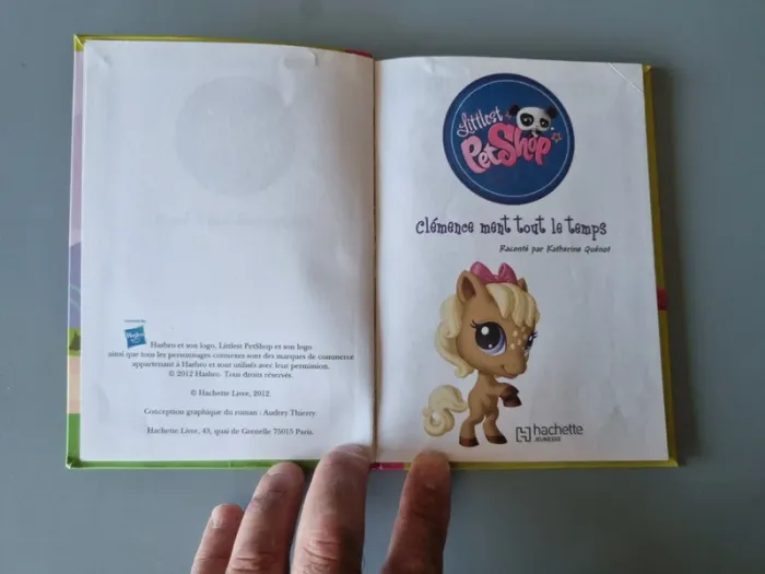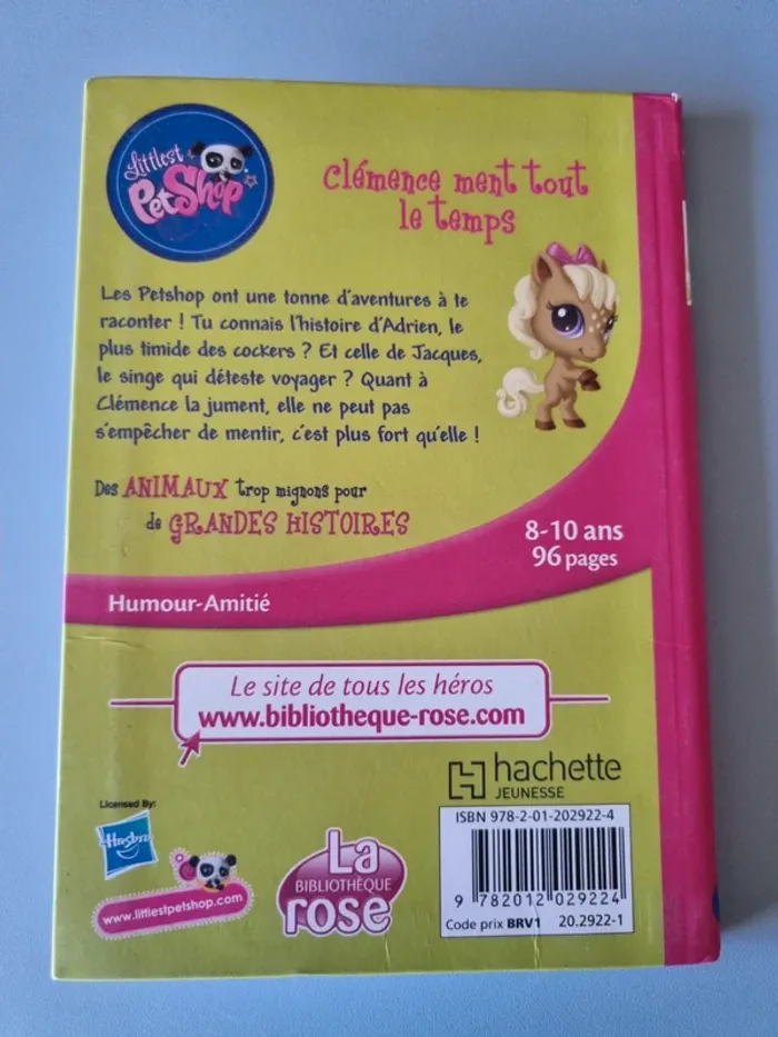 Livre Littlest Petshop-tome 9 : Littlest Petshop 09 - Clémence ment tout le temps Collection bibliothèque rose Hachette jeunesse 12 cm x 17 cm 96 pages Les Petshop ont une tonne d'aventures à te raconter ! Tu connais l'histoire d'adrien, le plus timide des cockers ? Et celle de Jacques, le singe qui déteste voyager ? Quand à Clémence la jument, elle ne peut pas s'empêcher de mentir, c'est plus fort qu'elle ! Pour voir d'autres affaires : #fred5129_livres