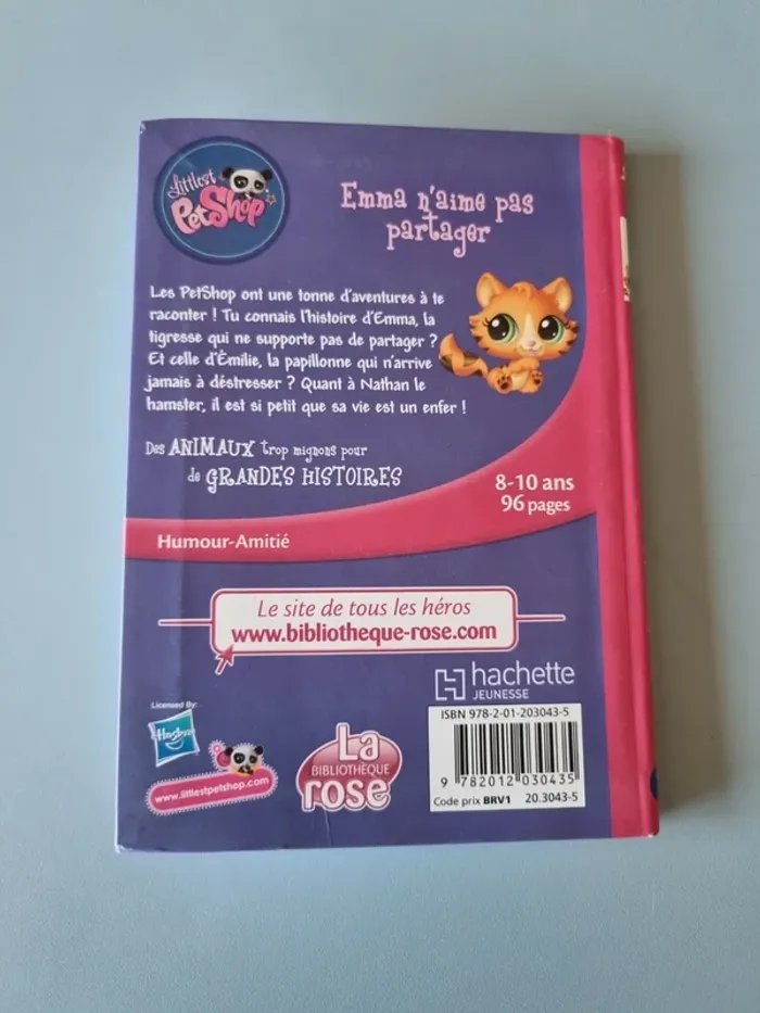 Livre Littlest Petshop - Emma n'aime pas partager Éditeur ‏ : ‎ Hachette Jeunesse 96 pages Âge de lecture ‏ : ‎ 6 - 8 ans Dimensions ‏ : ‎ 12.8 x 0.8 x 17.8 cm Les PetShop ont une tonne d’aventures à te raconter ! Tu connais l’histoire d’Emma, la tigresse qui ne supporte pas de partager ? Et celle d’Emilie, la papillonne qui n’arrive jamais à déstresser ? Quant à Nathan le hamster, il est si petit que sa vie est un enfer ! Très bon état À retirer sur place ou frais de port à votre charge Pour voir d'autres livres #fred5129_livres