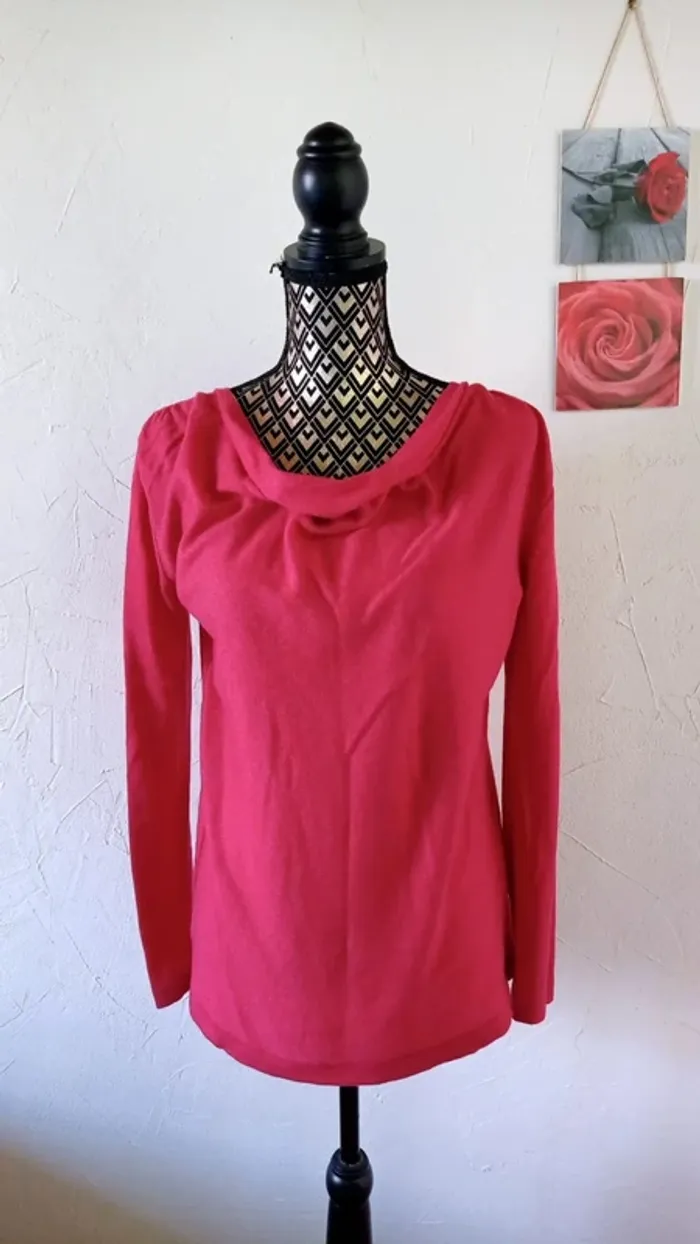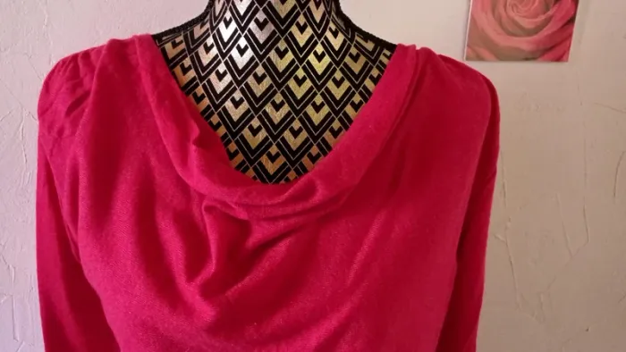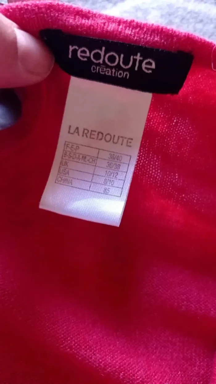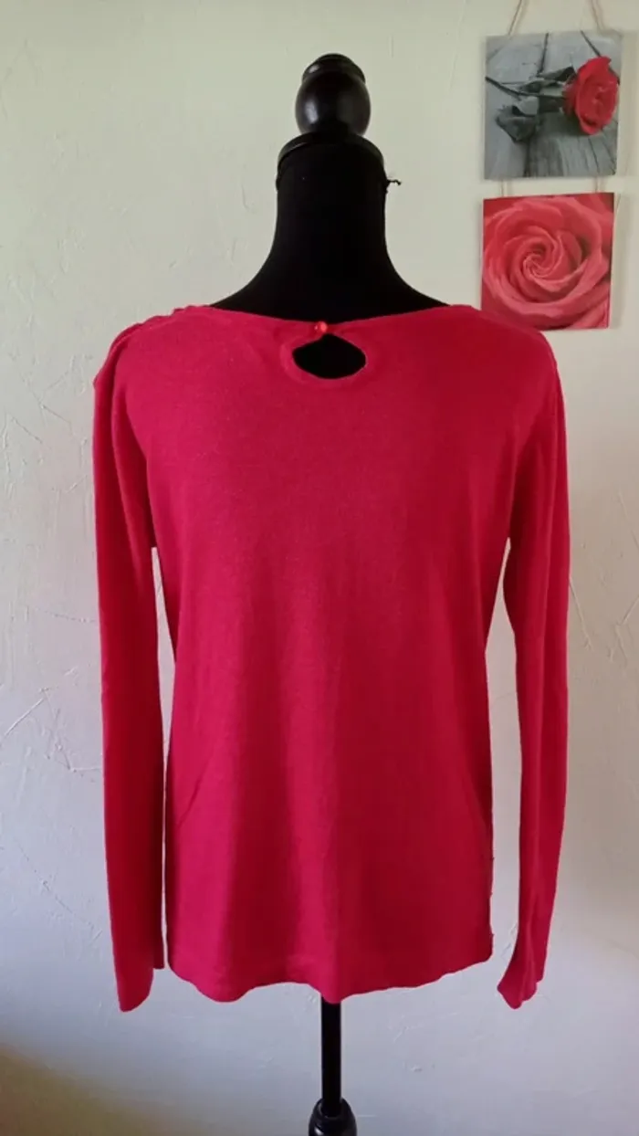 Joli pull, couleur rouge clair qui tire légèrement sur le fuschia. Col effet drapé et boutonné au dos. Très bon état. Largeur à plat d'une aisselle à l'autre : 48cm, longueur à partir du dessus de l'épaule : 65 cm environ. #frip_femme38 #frip_femme40 ⚠️lots : contactez-moi pour que je vous fasse une annonce spécifique si vous souhaitez faire un lot, une remise sera effectuée sur le total 😊😊