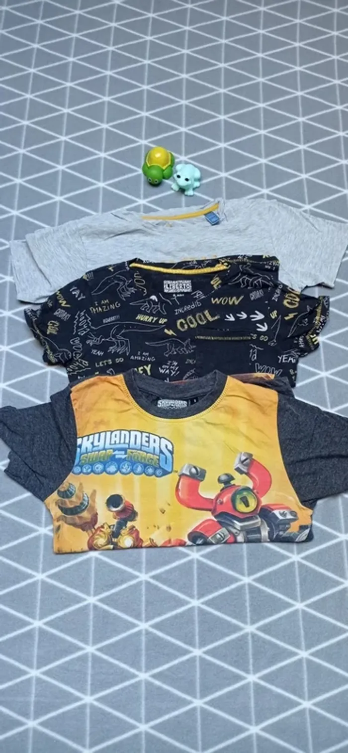 🦁1 skylanders, les manches et le dos sont gris chiné foncé, très bon état général 🦁1 avec dinosaures, légèrement délavé mais reste en très bon état général. Liberto 🦁1 gris chiné avec déco jaune, très bon état général, Okaïdi #frip_garçon8ans ⚠️lots : contactez-moi pour que je vous fasse une annonce spécifique si vous souhaitez faire un lot, une remise sera effectuée sur le total 😊