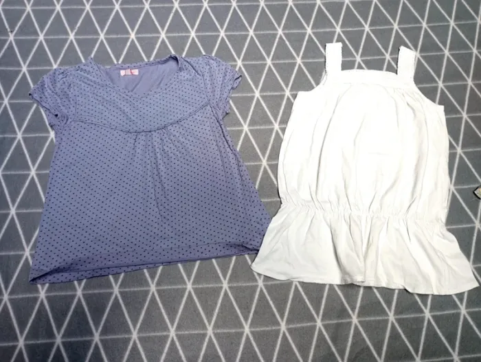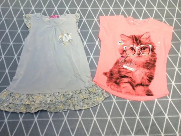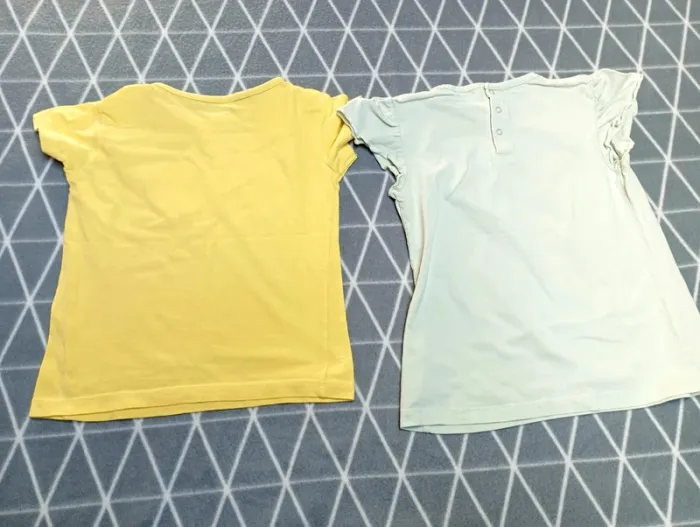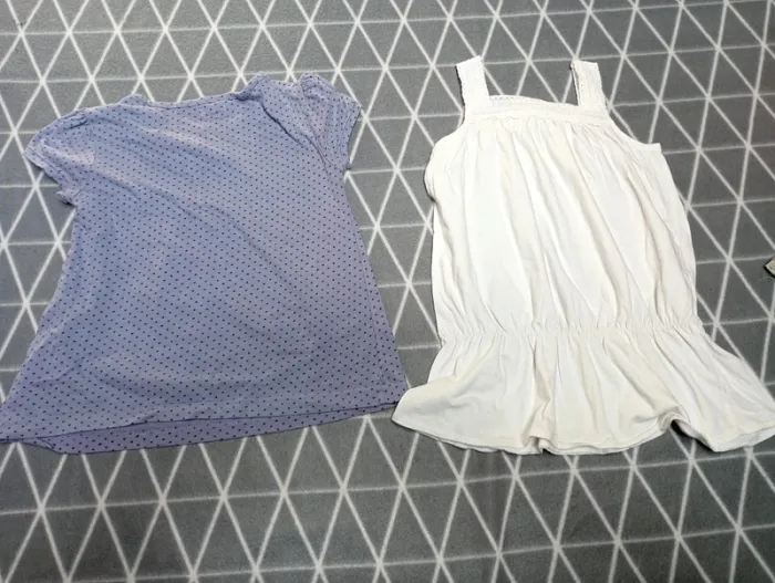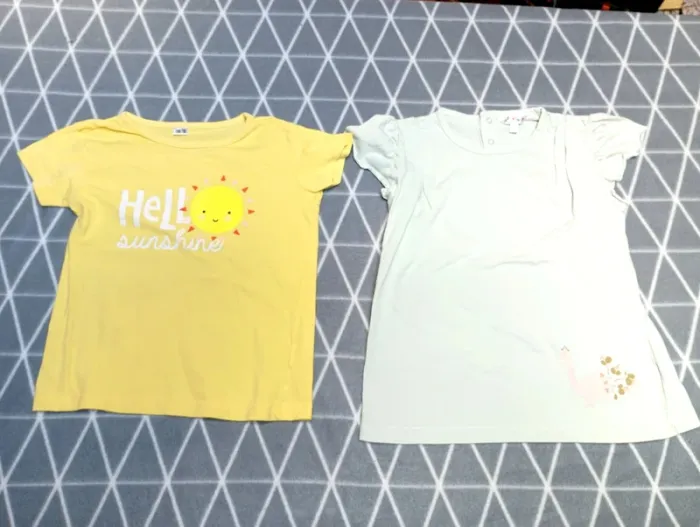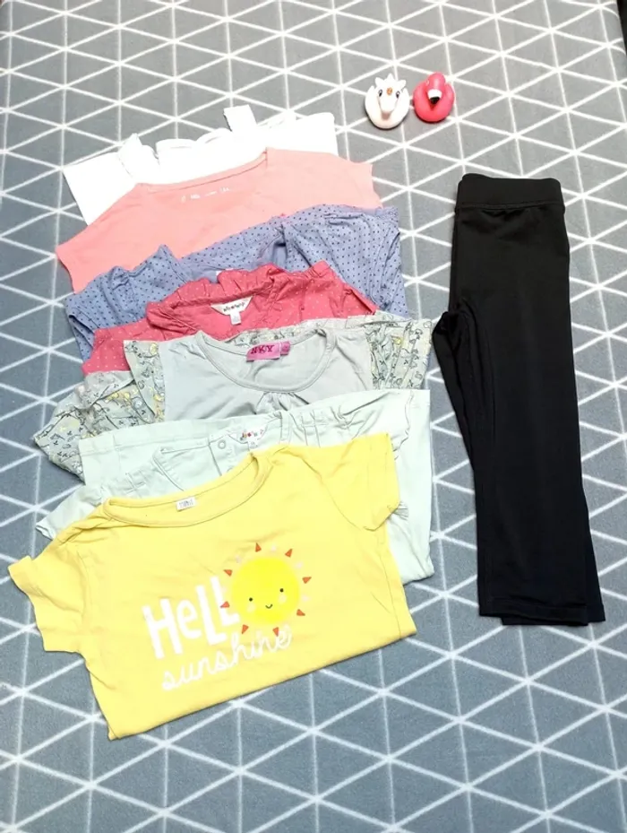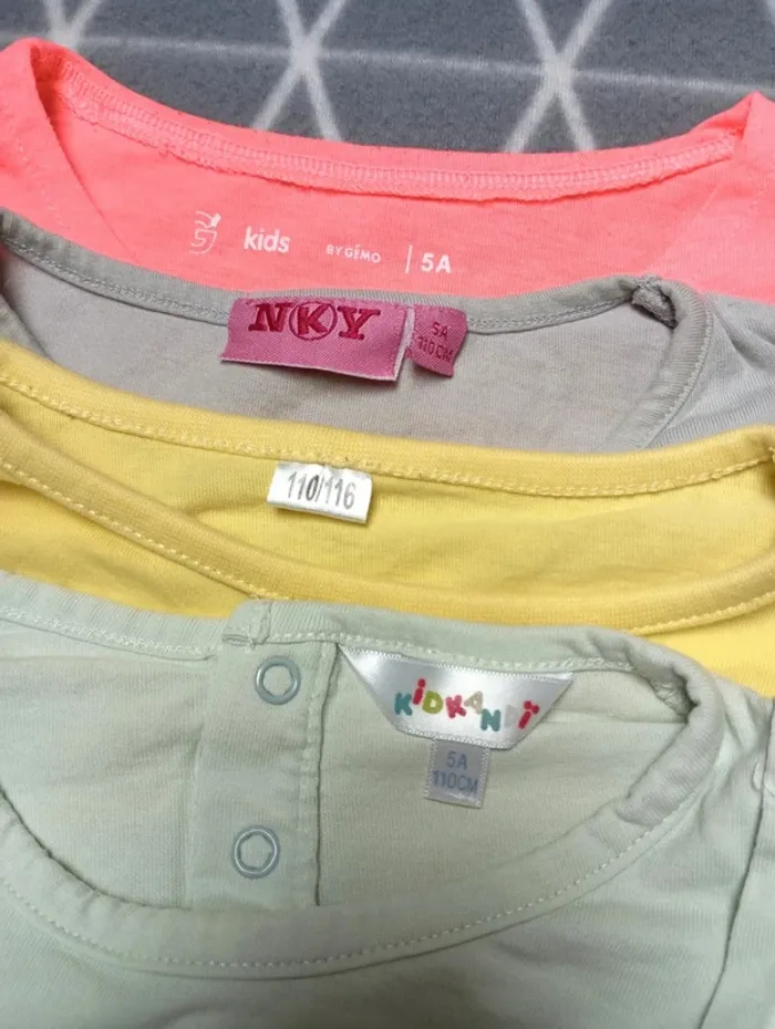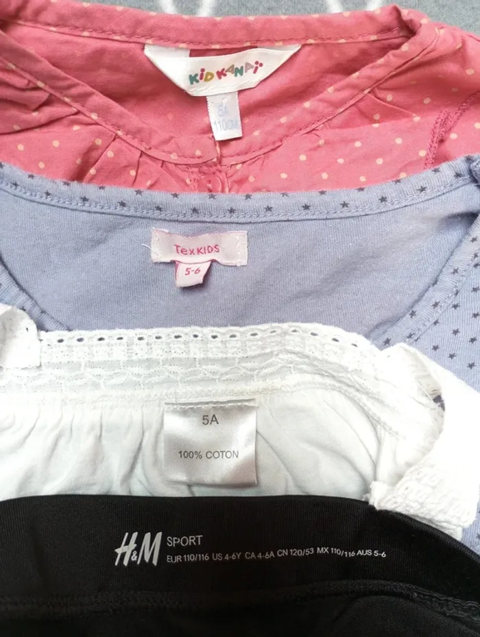 🦄1 t-shirt jaune avec déco soleil, noté 110/116cm. Très bon état général malgré un petit trait léger sur le devant 🦄1 t-shirt vert d'eau très clair. 3 boutons pression en haut du dos. Très bon état. Kid Kanaï 🦄1 tunique grise avec petits volants sur les manches et sur le bas du vêtement. Très bon état. NKY 🦄1 t-shirt rose fluo avec chat. Tendance à boulocher un peu mais reste en très bon état général. Gémo 🦄1 t-shirt mauve avec petites étoiles. Noté 5-6 ans. Très bon état. Tex kids 🦄1 tunique blanche à bretelles (brodées) Resserrée à la taille. Très bon état 🦄1 blouse manches longues, vieux rose à pois. Très bon état. Kid Kanaï 🦄1 legging sport noir, noté 110-116. Très bon état. H&M #frip_fille5ans ⚠️lots : contactez-moi pour que je vous fasse une annonce spécifique si vous souhaitez faire un lot, une remise sera effectuée sur le total 😊