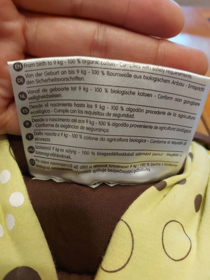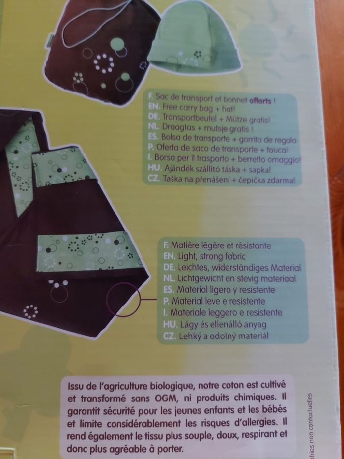 Sling écharpe de portage porte bébé a anneaux physiologique. Neuf dans sa boite. Reçu en cadeau mais pas a l'aise avec le sling j'ai préféré l'écharpe de portage et le porte bb physio donc jamais utilisé ni laver. Juste sorti pour faire les photos. En coton bio. Vert pomme et marron. 18€.