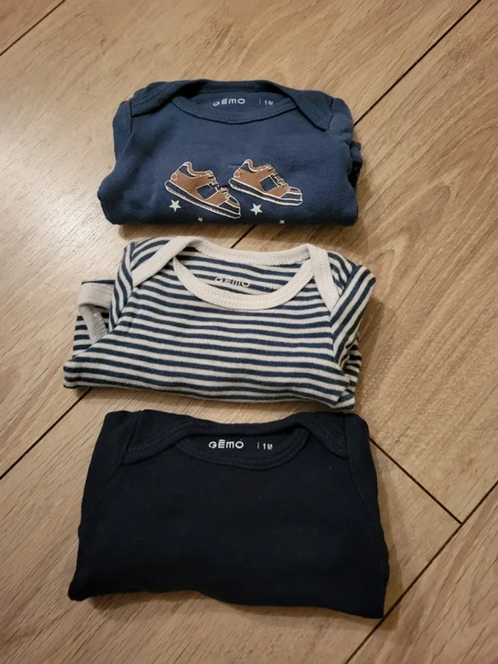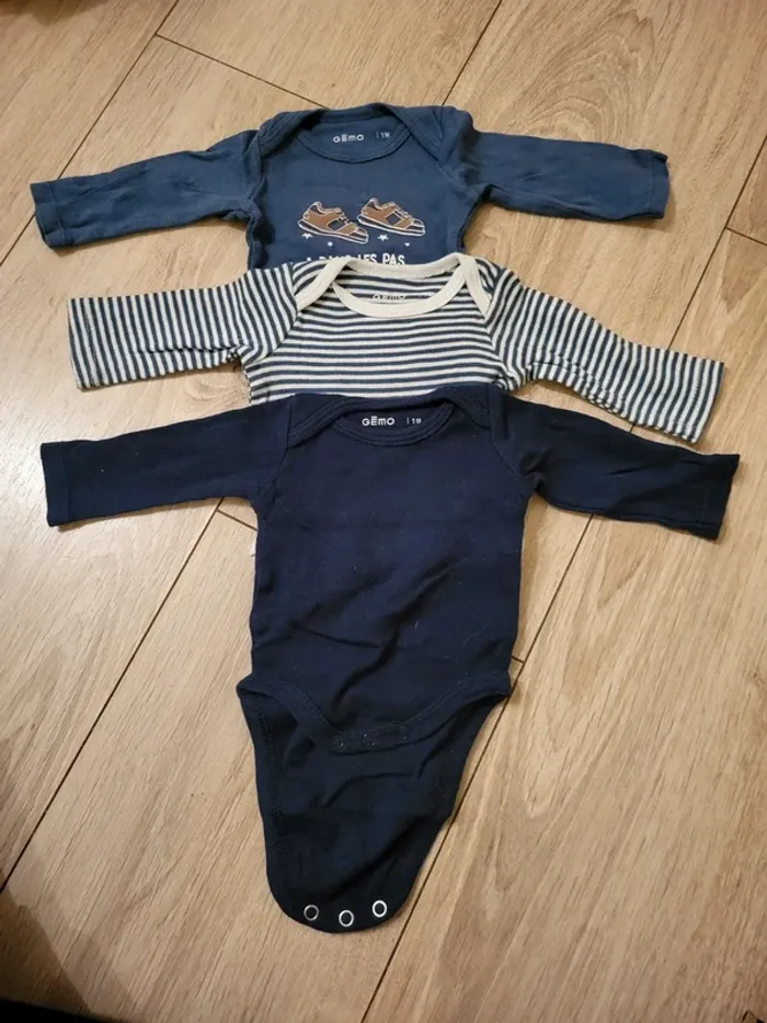Lots de 3 bodys gemo 1 mois manches longues #angelisa77_1mois