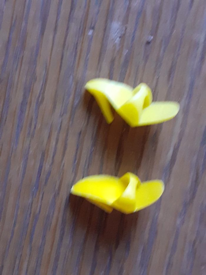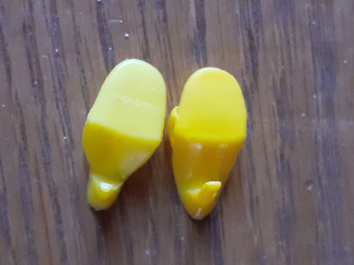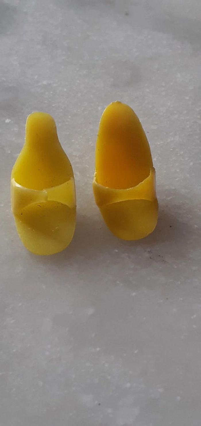 Paire de mules jaune 2 teintes de jaune différentes 1 des 2 a le retour sur le coup de pied fendu #misspouletteBarbie #jouet #Barbie #Mattel #vintage #collection #ancien #poupeevintage80 #barbievintage