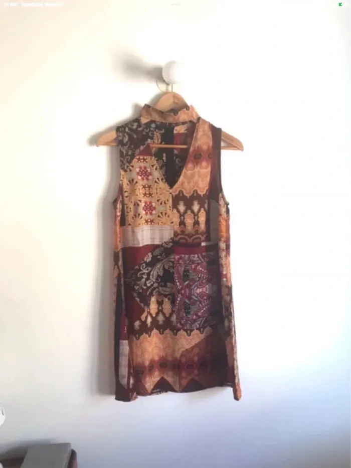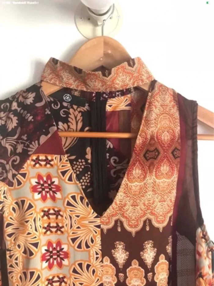 Robe taille 36 sans manches et à imprimés cachemire. #robe #robesansmanches#robefemme #robefemmetaille36 #robefemmefluide36 #robeimprimeecachemire #robeimprimée #robecolchemise #robefemme36 #robetaille36 #imprimés #robeparisian #robechic #robefemmesansmanches #robefemmesansmanches36 #robechic36