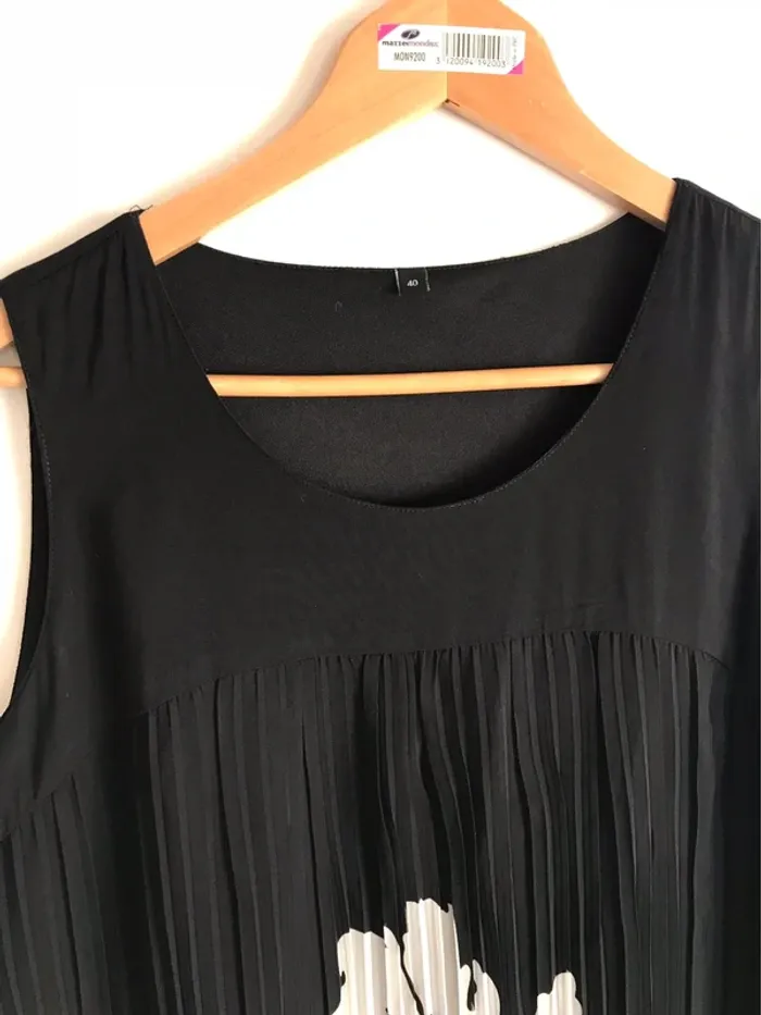 Robe sans manches et plissée noire à imprimés fleuris taille 40 - photo numéro 9
