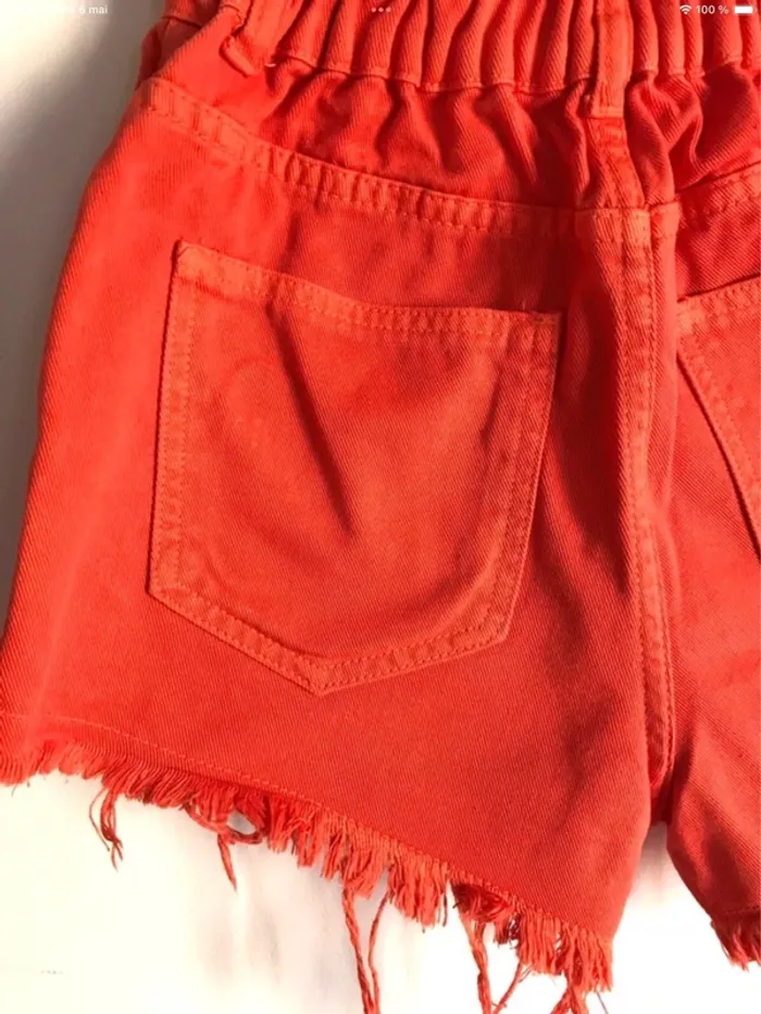 Short en jean orange 🍊 taille XS effet effiloché - photo numéro 8