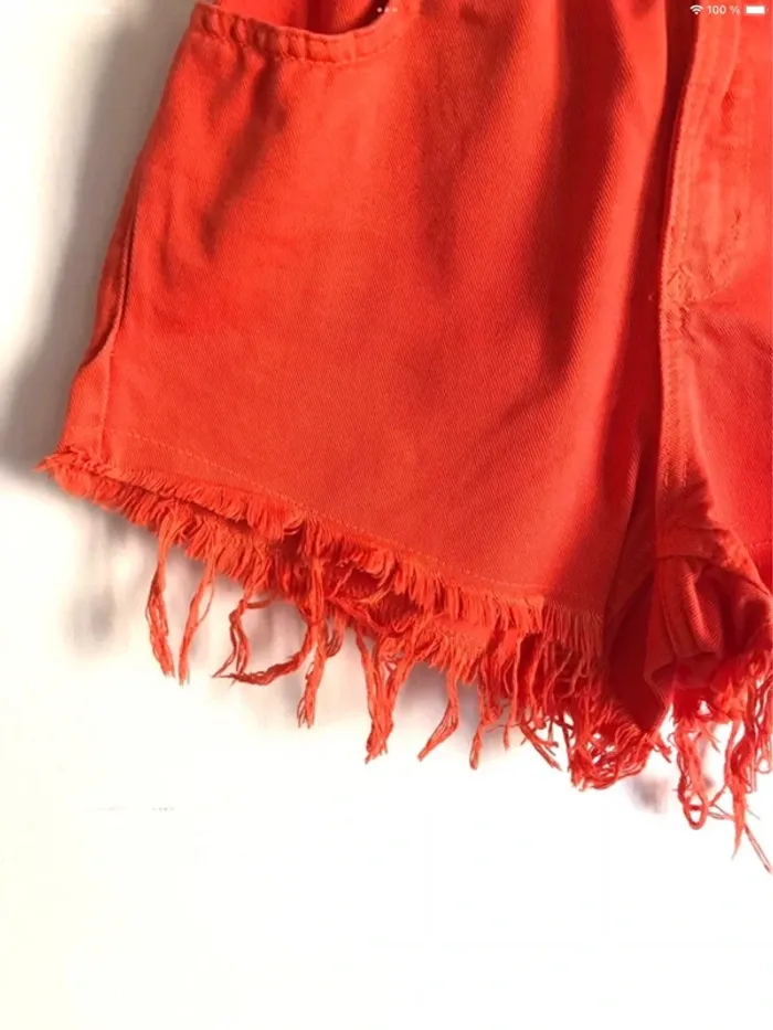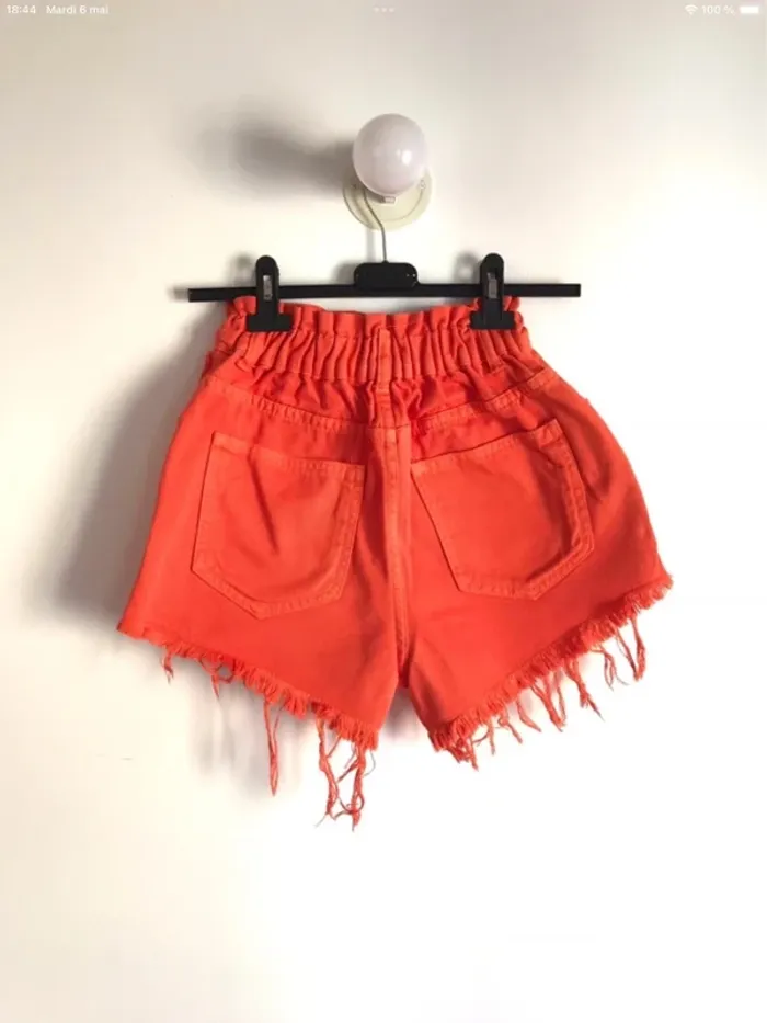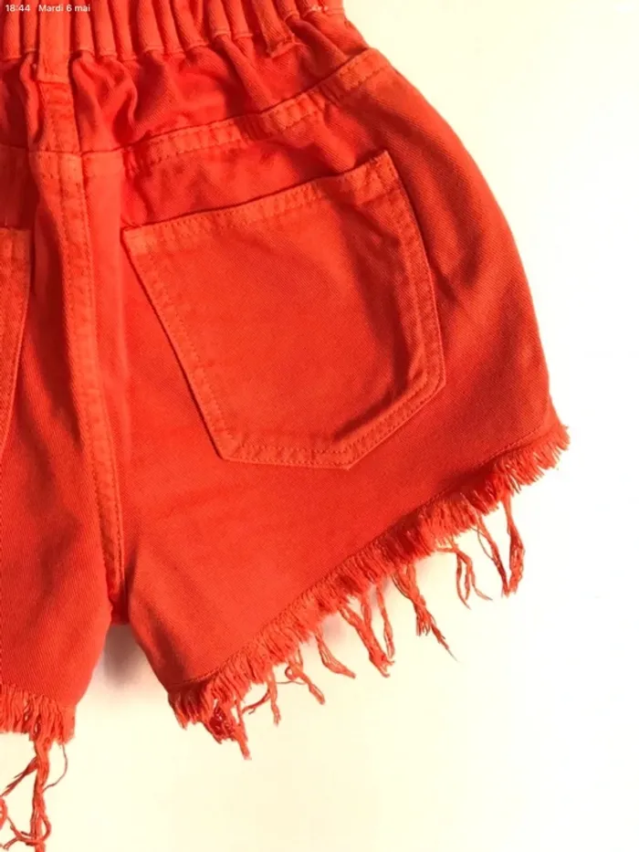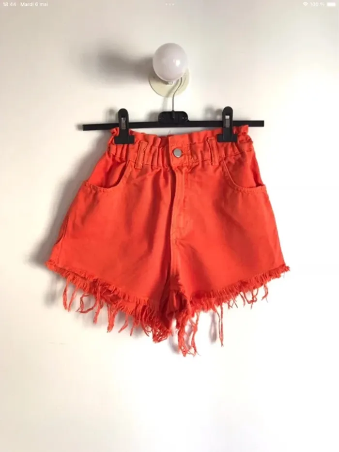 Short en jean orange 🍊 taille XS effet effiloché. Pas d’étiquette de marque. #short #shortenjean #shortenjeanfemme #shortenjeanorange #shortenjeanfemmexs #shortxs #shortorangexs #shorteffiloché #shorteffiloché34 #shortetefemme #shortetefemme34