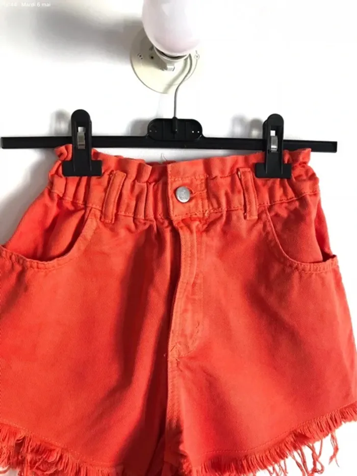 Short en jean orange 🍊 taille XS effet effiloché - photo numéro 1